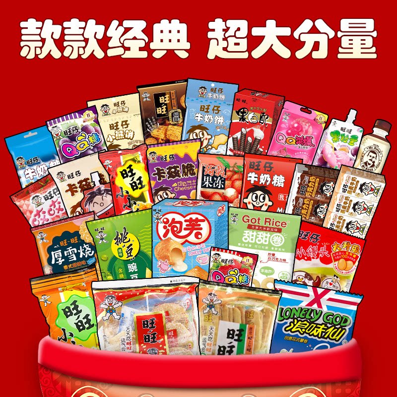 旺旺仔大礼包巨型豪华版1.28kg零食过马年货儿童春节送人仙贝超大