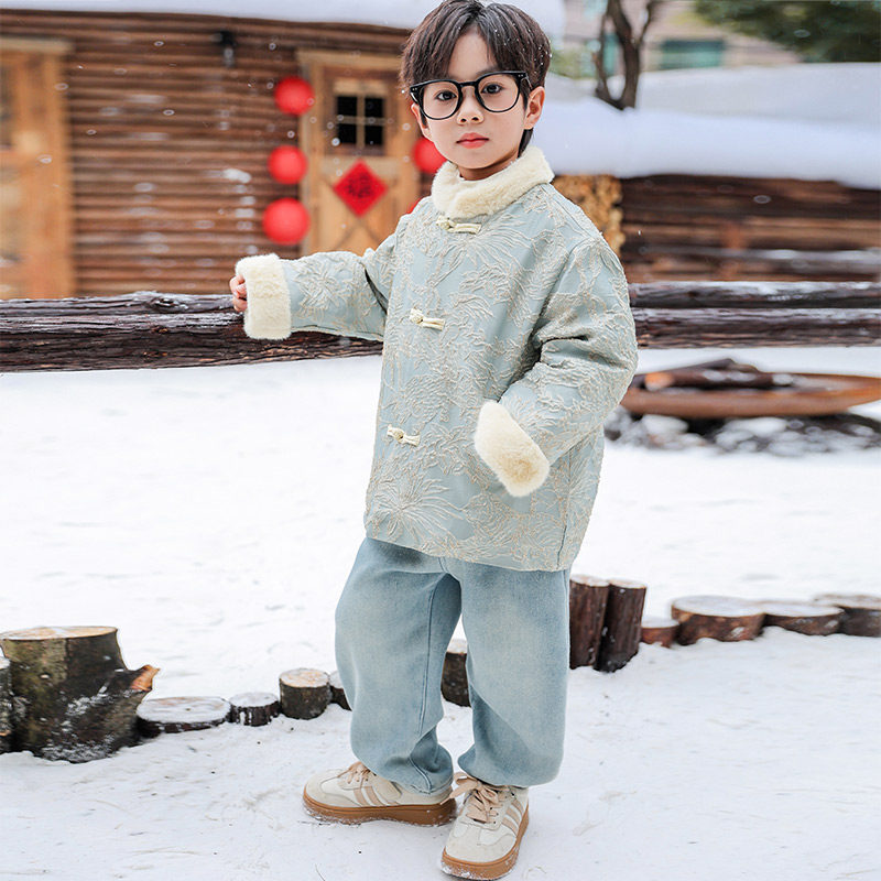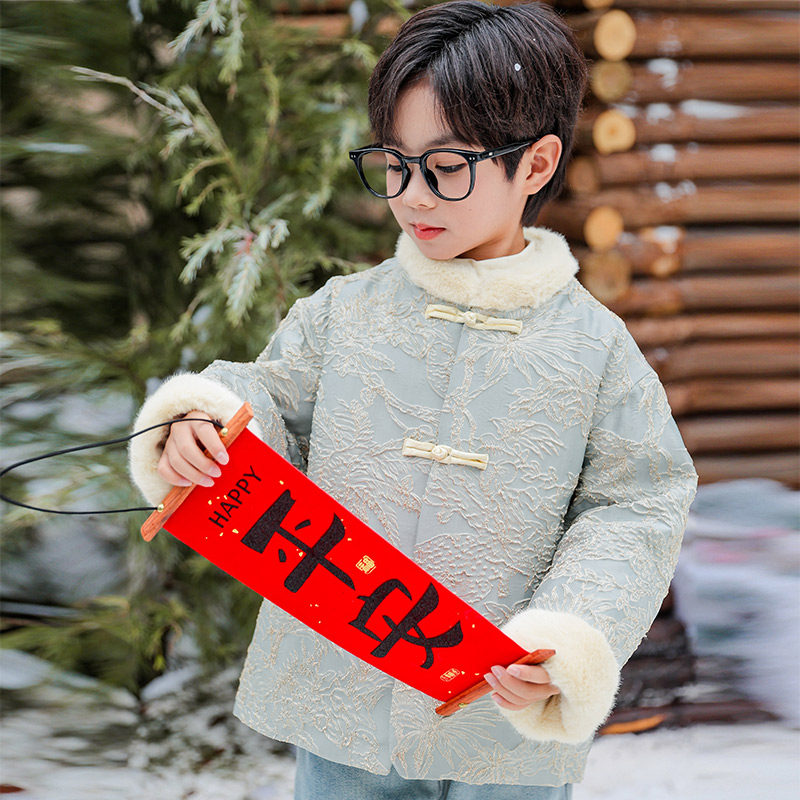 男童拜年服2026新款秋冬儿童冬装唐装中式汉服加厚外套喜庆过年服