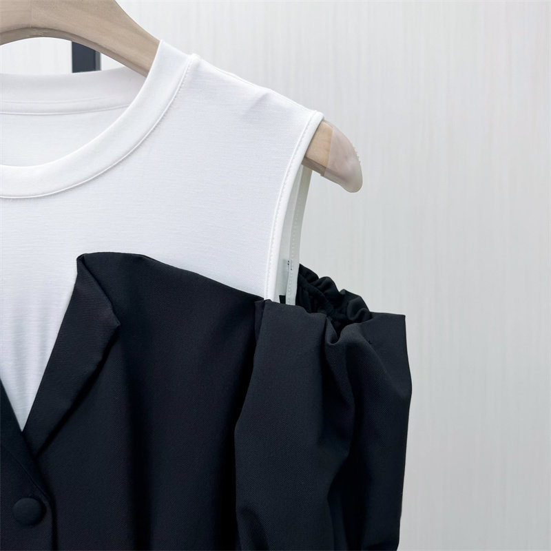 乂●2026春季新品 拼接假两件连衣裙女设计感小众休闲a字裙0211