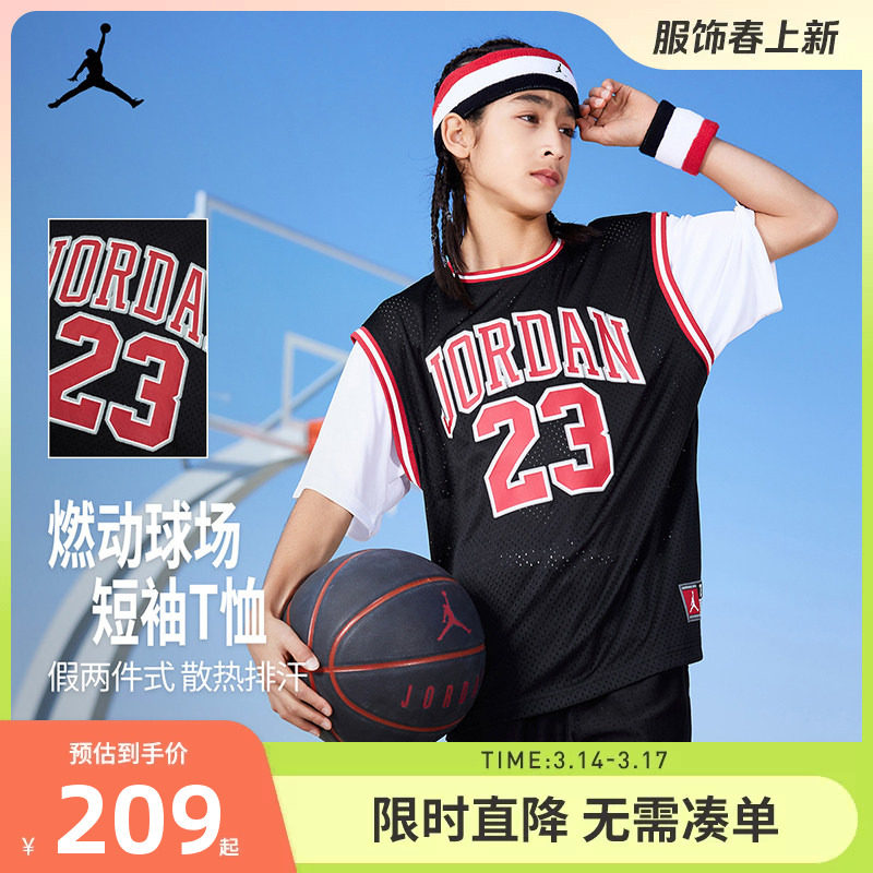 Jordan男女童短袖篮球上衣儿童运动T恤2026夏季新款大小童球服潮