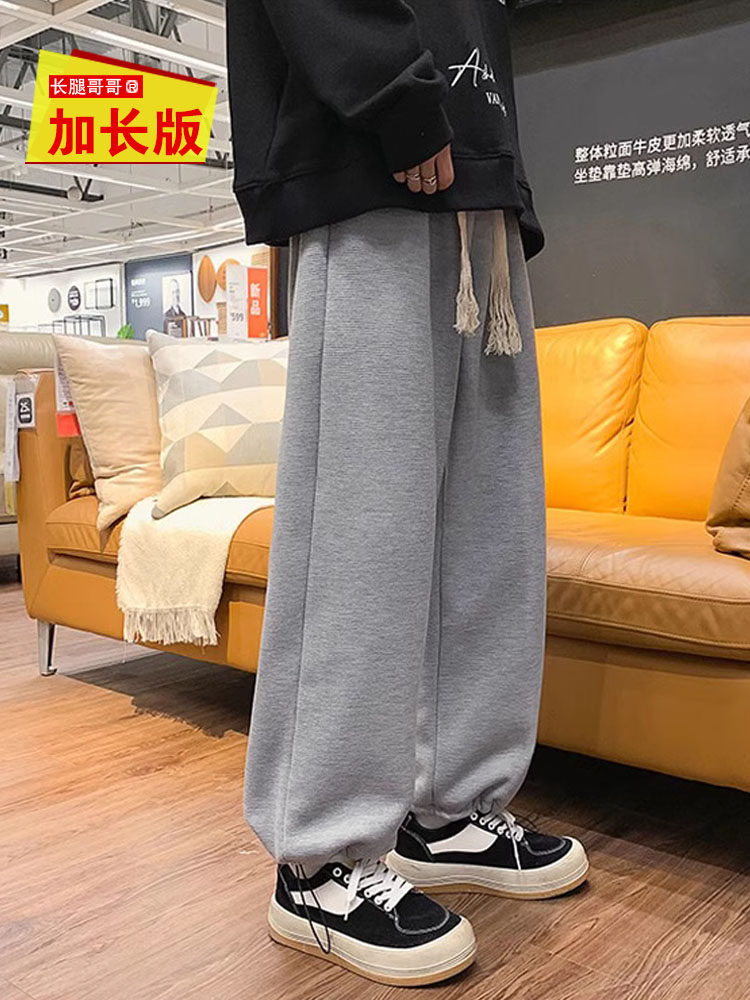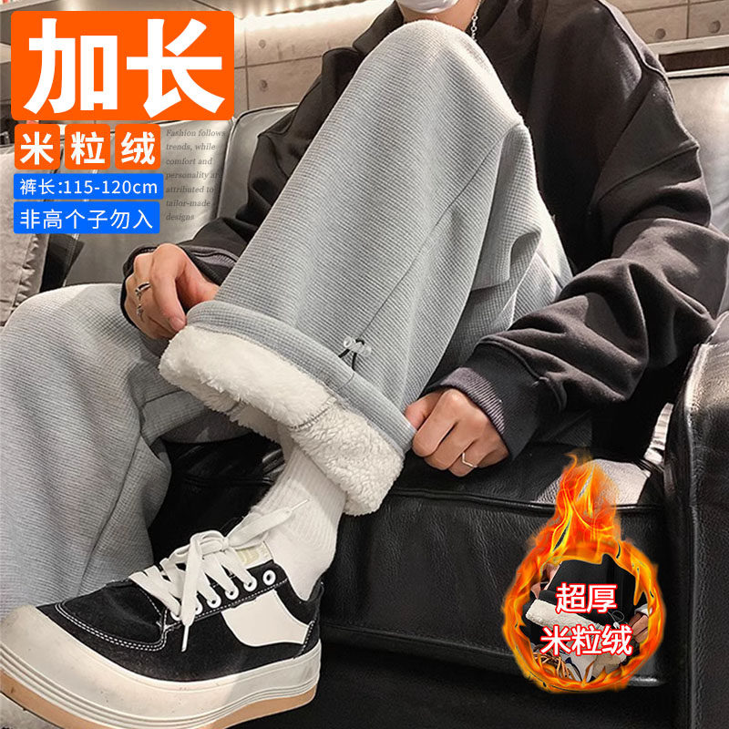 加绒加厚学生瘦高个子加长裤子男生青少年直筒宽松长腿叔冬季潮版