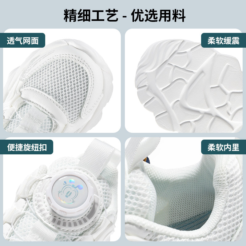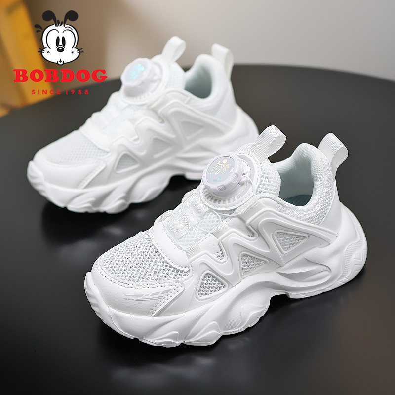 巴布豆童鞋女童小白鞋透气网面白色儿童运动鞋春季新款女孩老爹鞋