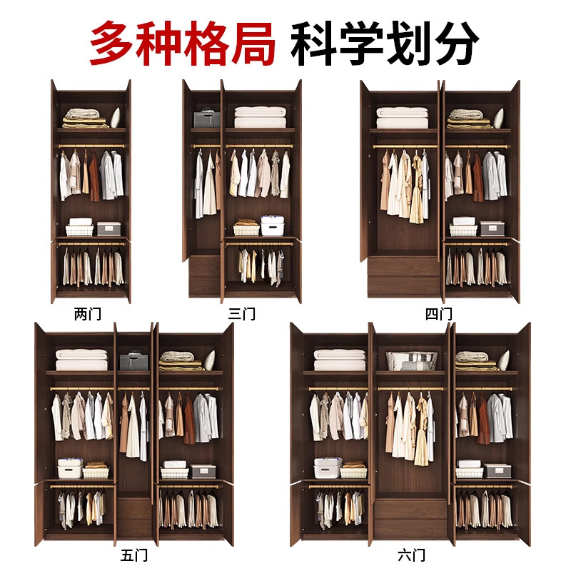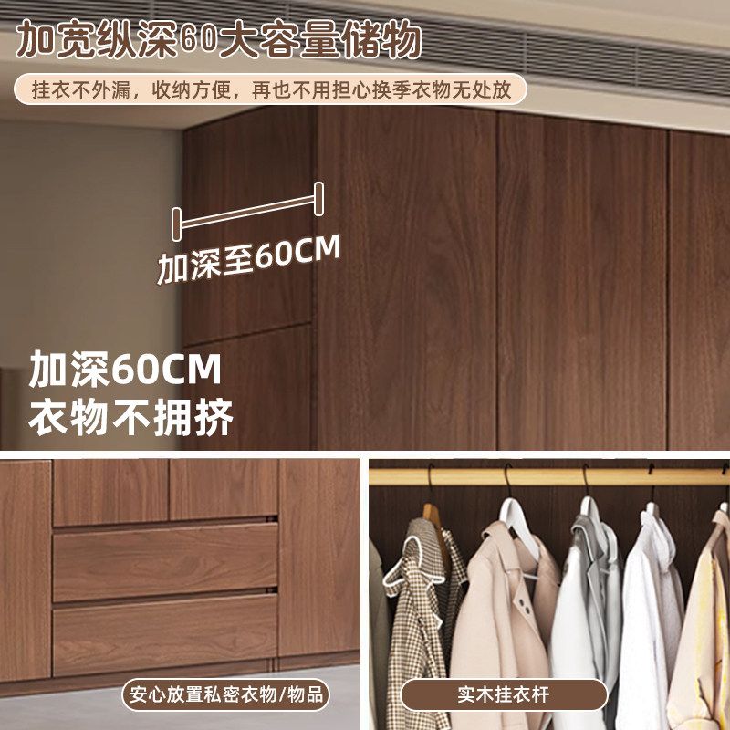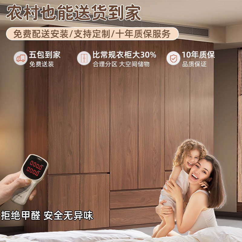 全实木衣柜家用卧室胡桃色定制分段式储物柜子2026爆款儿童大衣橱