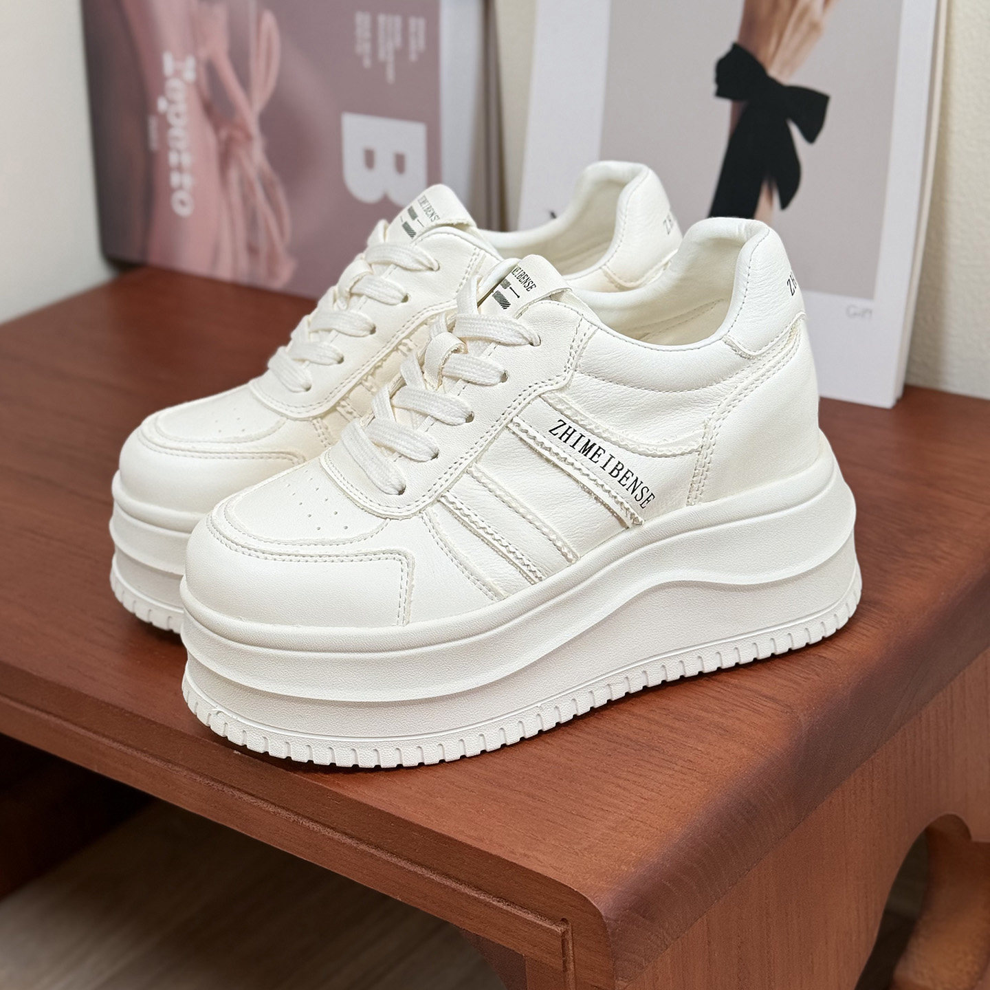 超轻真皮内增高8cm10公分厚底松糕小白鞋小个子女款2026新款春款