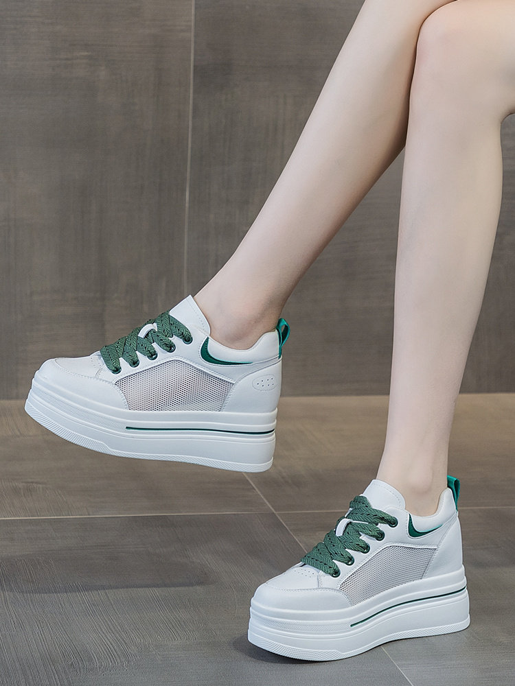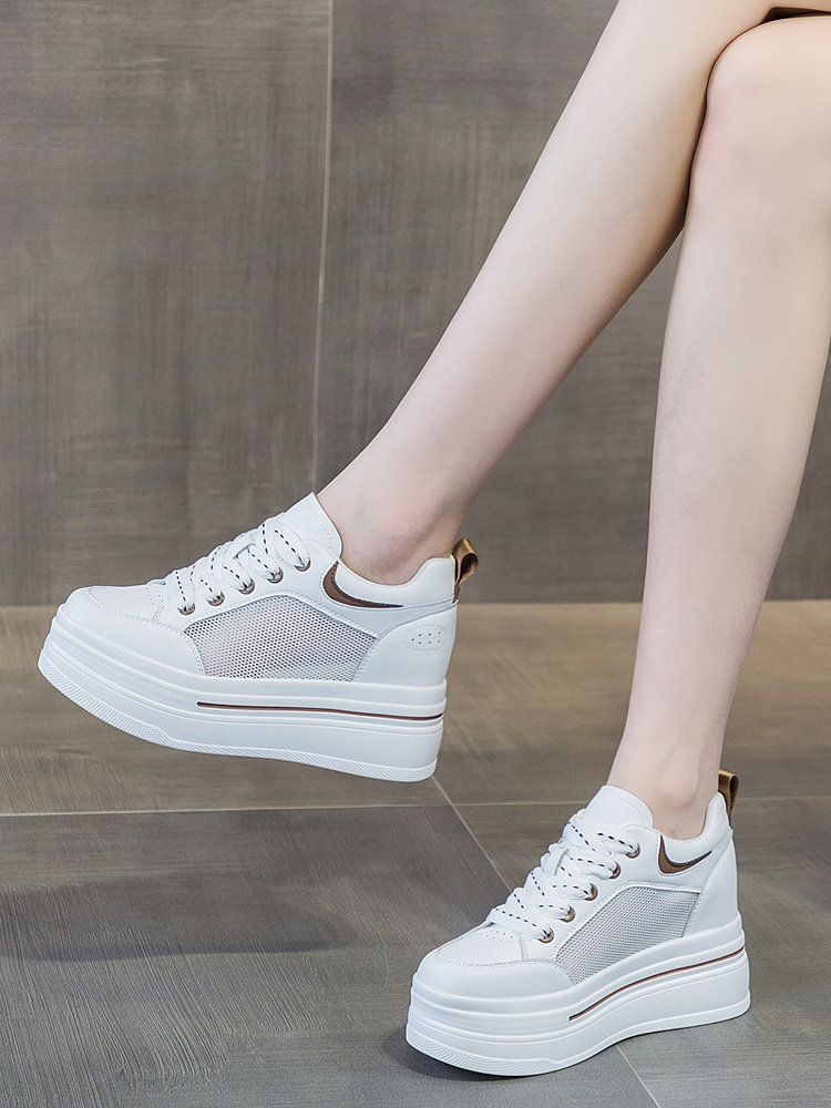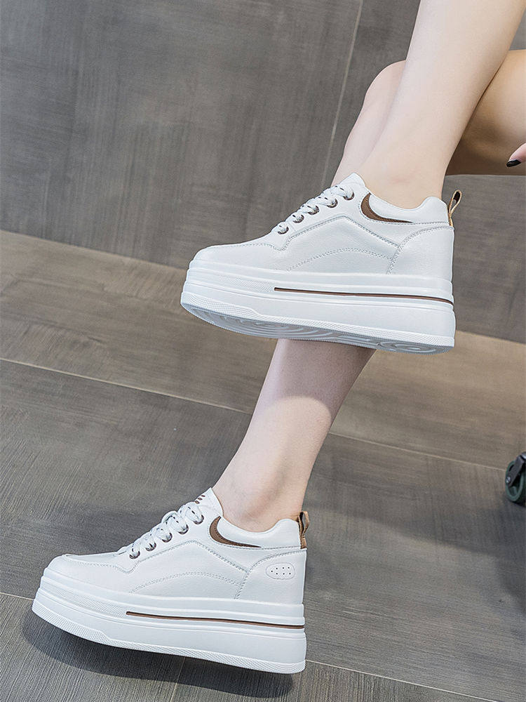 春款小个子内增高女鞋8cm真皮小白鞋女厚底松糕休闲白鞋坡跟板鞋