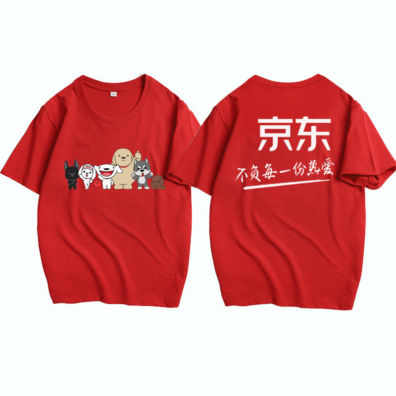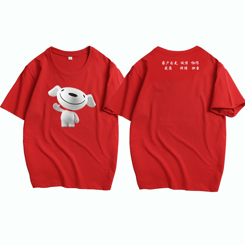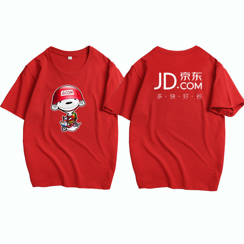 定制京东工作服短袖圆领纯棉T恤快递员物流服务+工装印字logo夏季