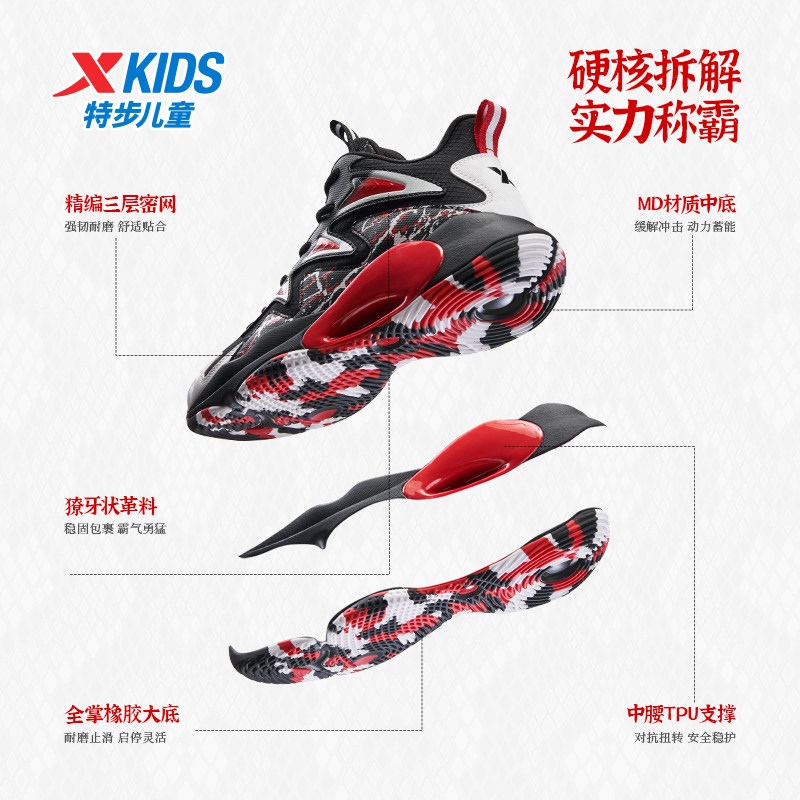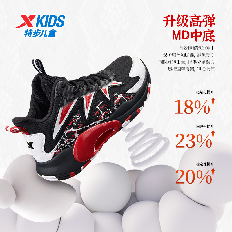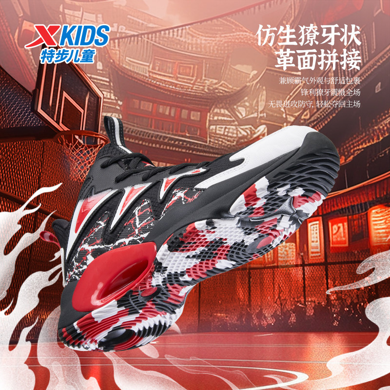 特步童鞋秋冬新款中大童高帮休闲耐磨篮球鞋儿童运动防滑耐磨球鞋