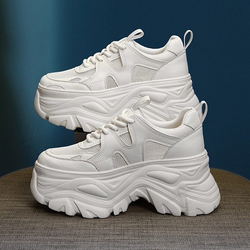 8cm真皮厚底老爹鞋女2024新款夏季透气网面休闲女款小个子增高鞋