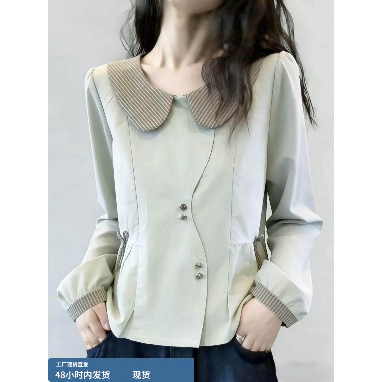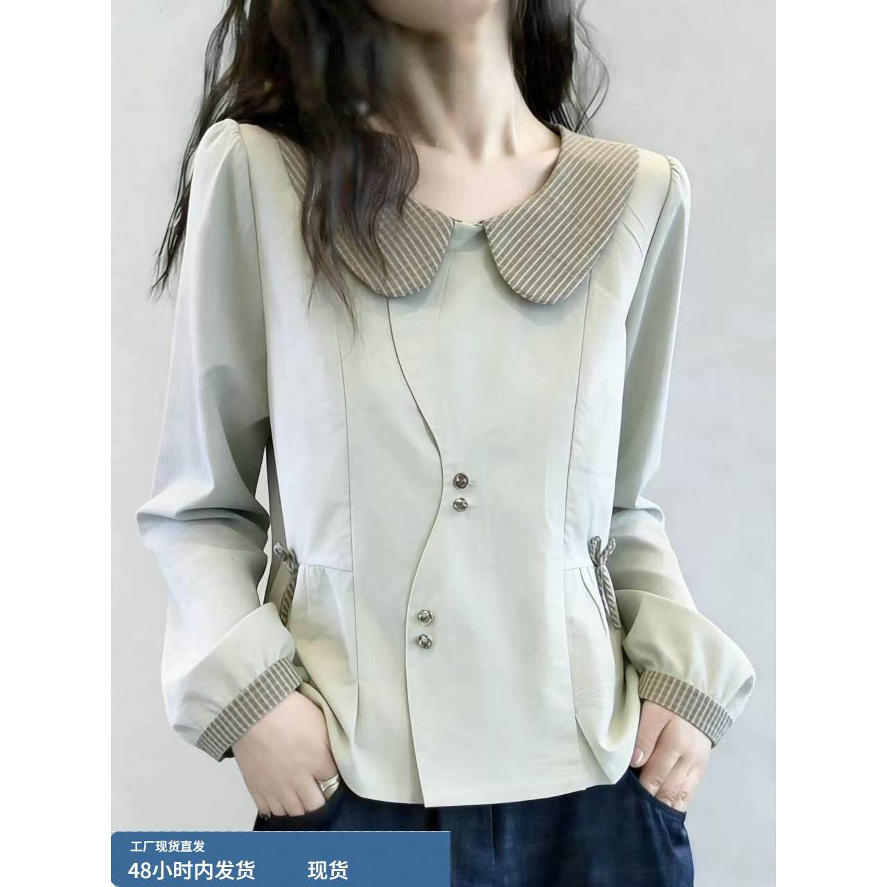 春装女款2026新款法式娃娃领拼接衬衫绝美巨好看减龄短款长袖上衣