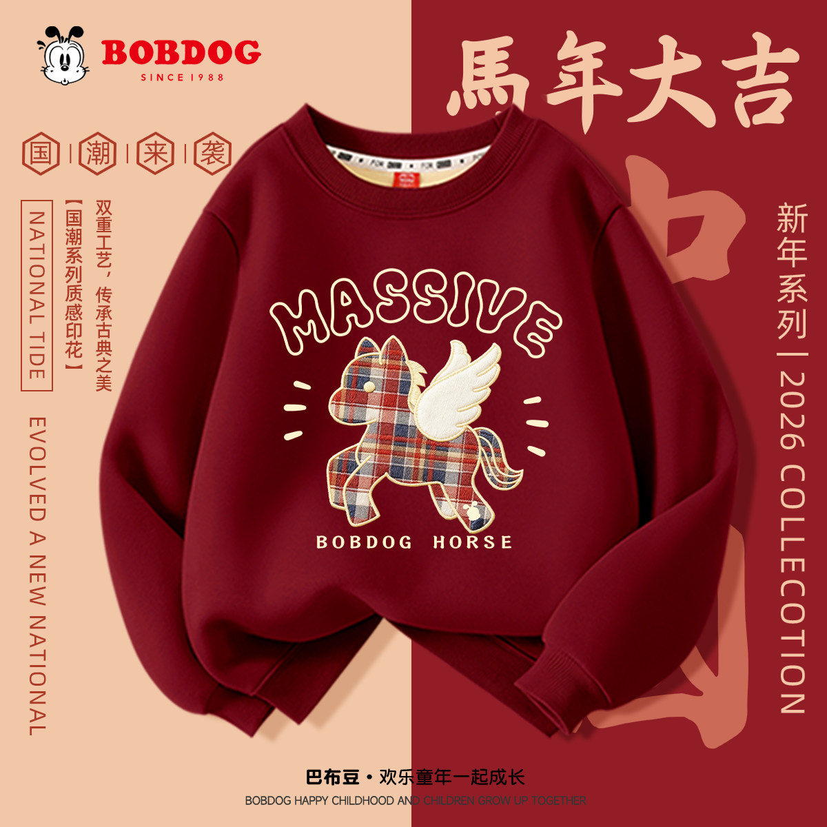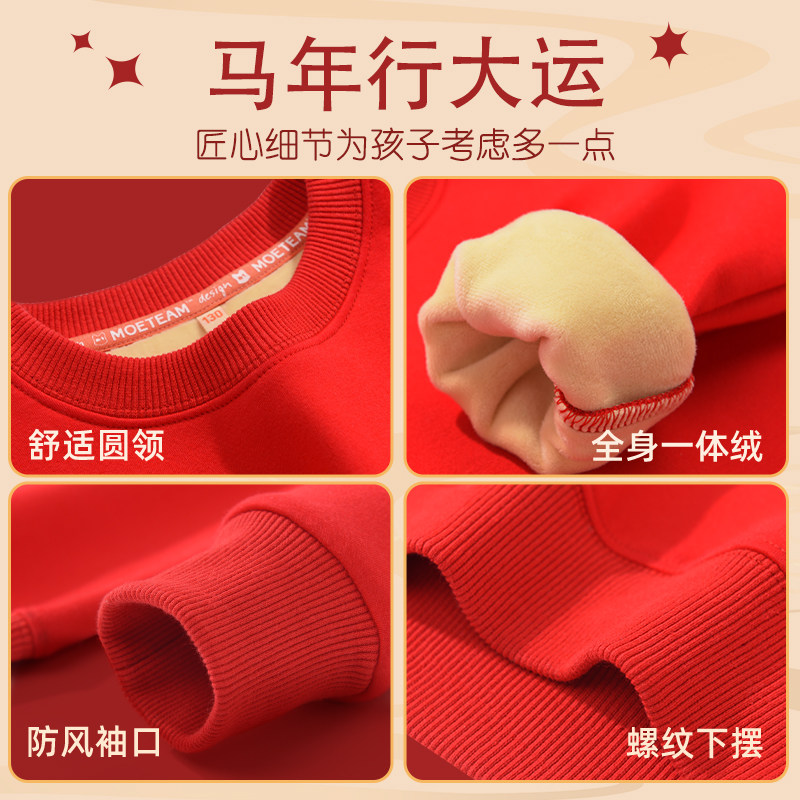巴布豆童装女童加绒卫衣红2026马年本命年女孩衣服洋气儿童上衣女