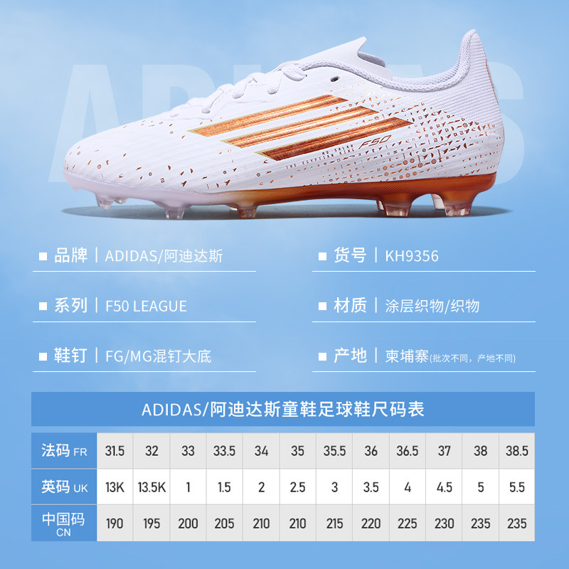 Adidas阿迪达斯儿童足球鞋F50萨拉赫联名FG/MG混钉男童女孩KH9356