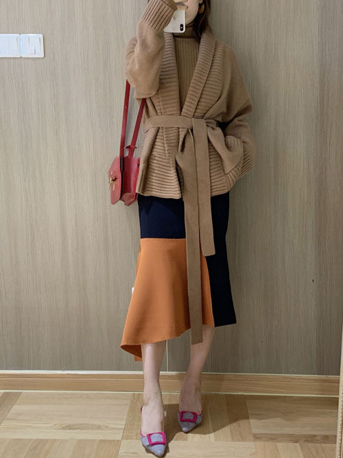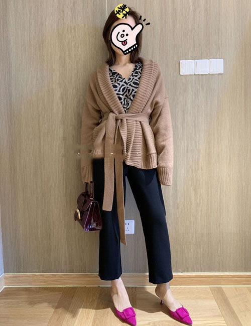 无敌时髦!针织加厚羊绒开衫秋冬腰带宽松慵懒网红毛衣女短外套