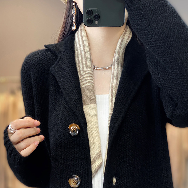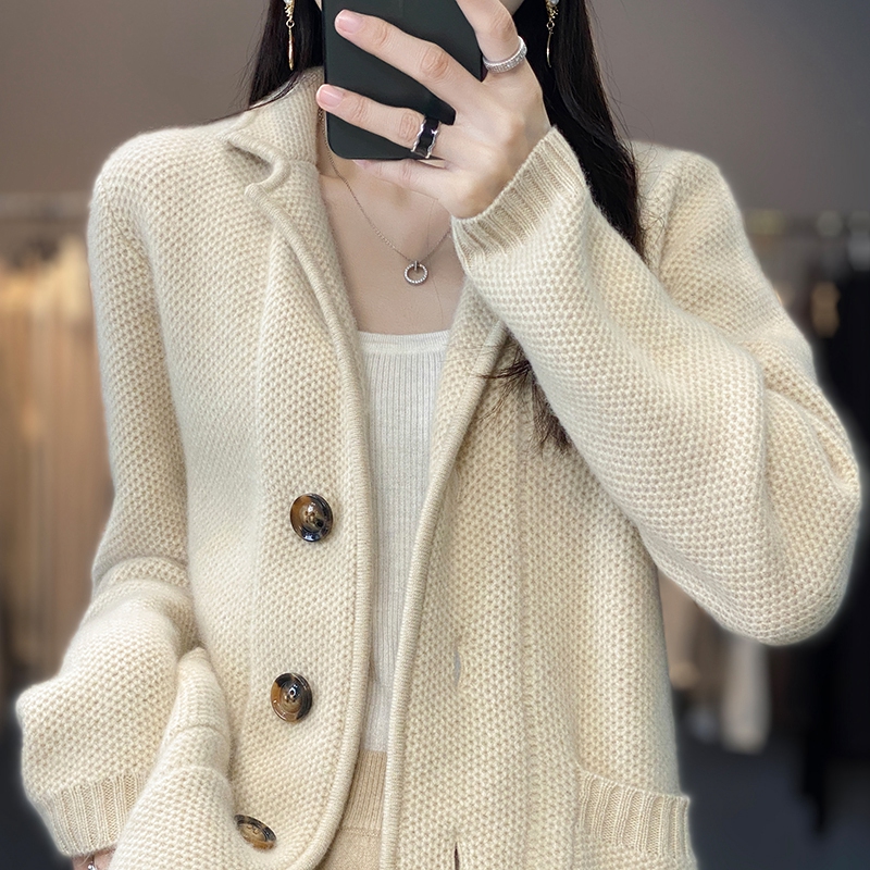 西装领羊毛开衫女重磅加厚宽松慵懒风针织外套毛衣秋冬新款羊绒衫