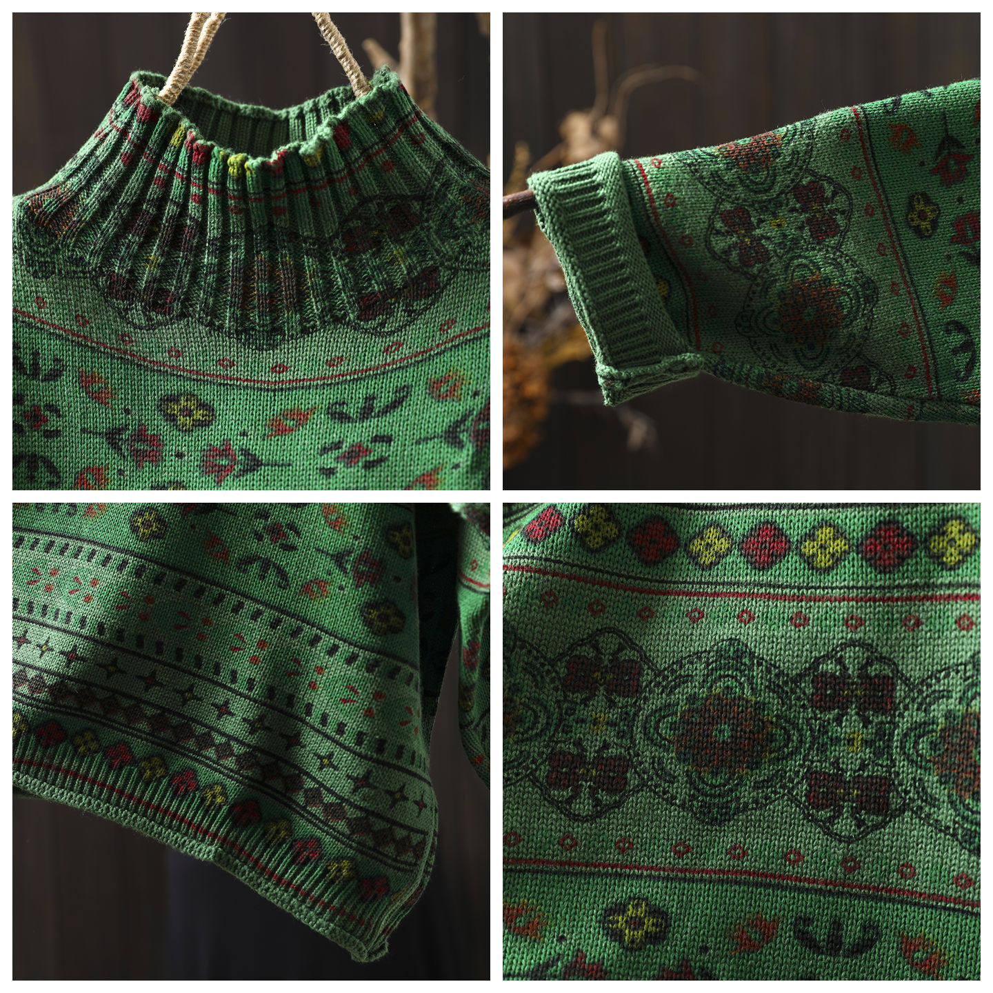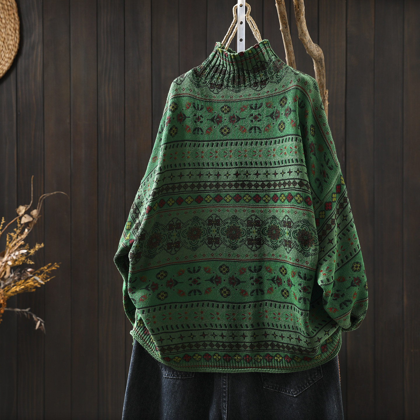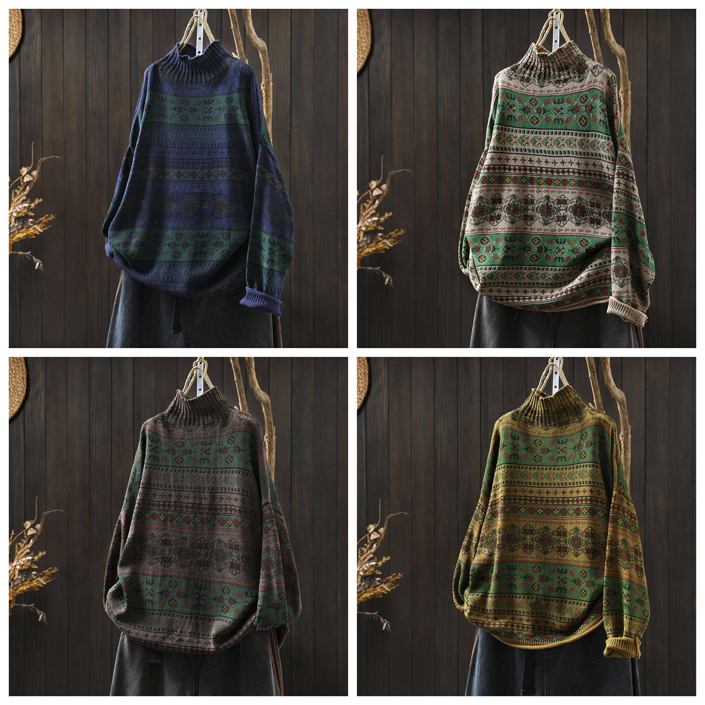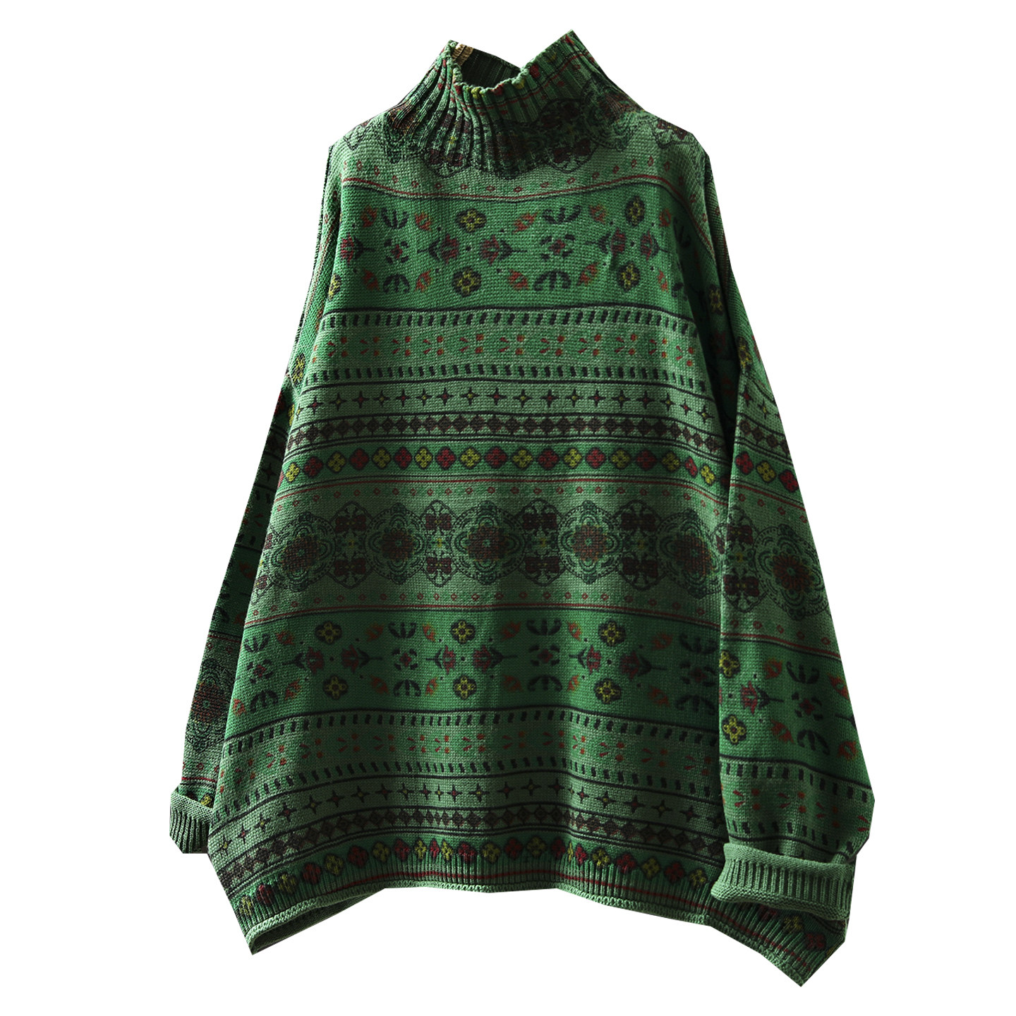 半高领毛衣可外穿内搭女款2026新款秋冬大码复古文艺印花宽松上衣