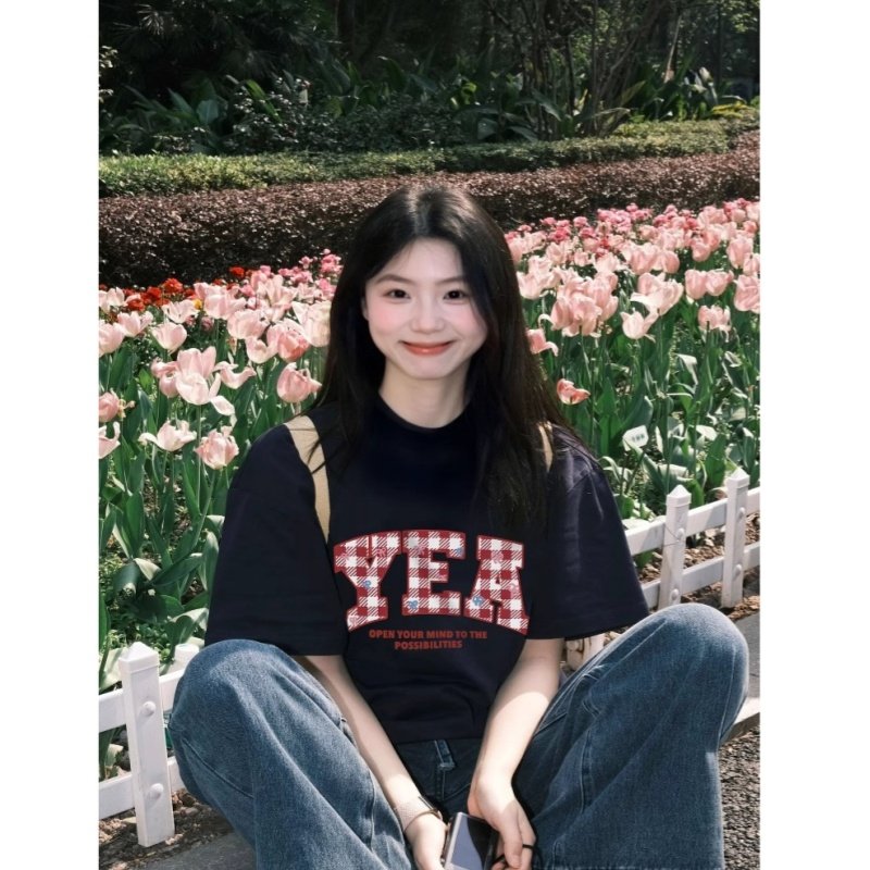 短袖t恤女夏藏蓝色2026新款爆款宽松显瘦半袖纯棉设计感百搭上衣
