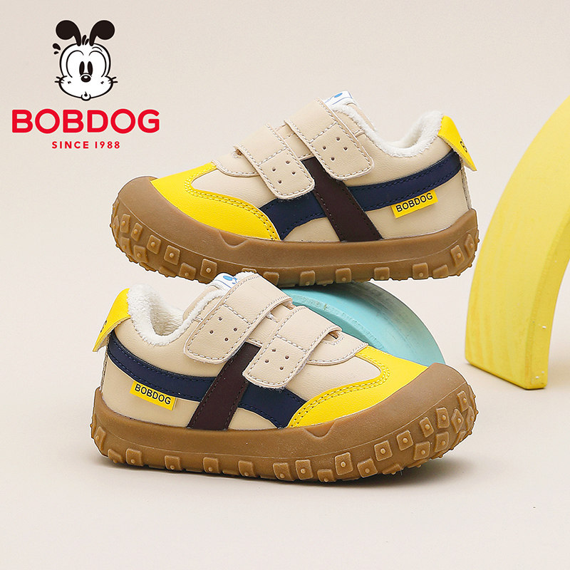 巴布豆童鞋男童宝宝学步鞋子2025冬季秋新款加绒软底保暖儿童棉鞋