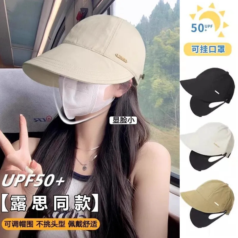 春夏款网红空顶鸭舌帽女升级版可挂口罩户外遮阳帽薄款速干防晒帽