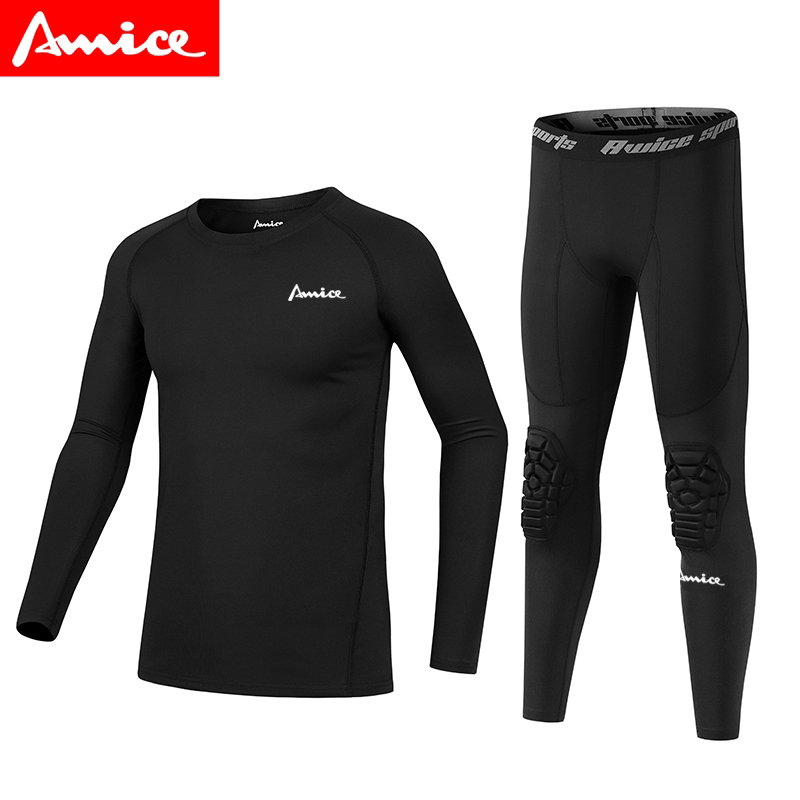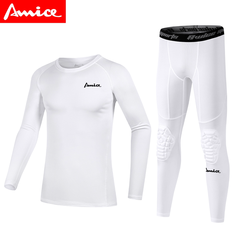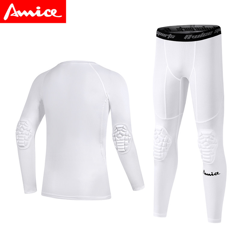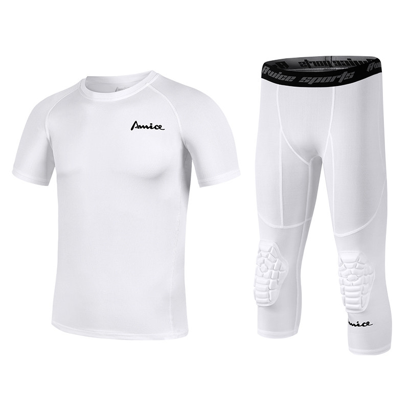 AWICE儿童青少年篮球服弹力速干衣紧身短袖 训练防撞护膝七分裤