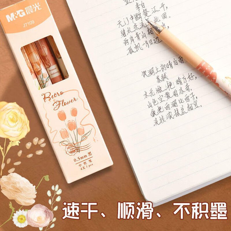 晨光中性笔高颜值限定绽放之诗女生0.5笔芯学生黑笔速干顺滑刷题专用办公笔按动新款签字笔文具一套作业神器