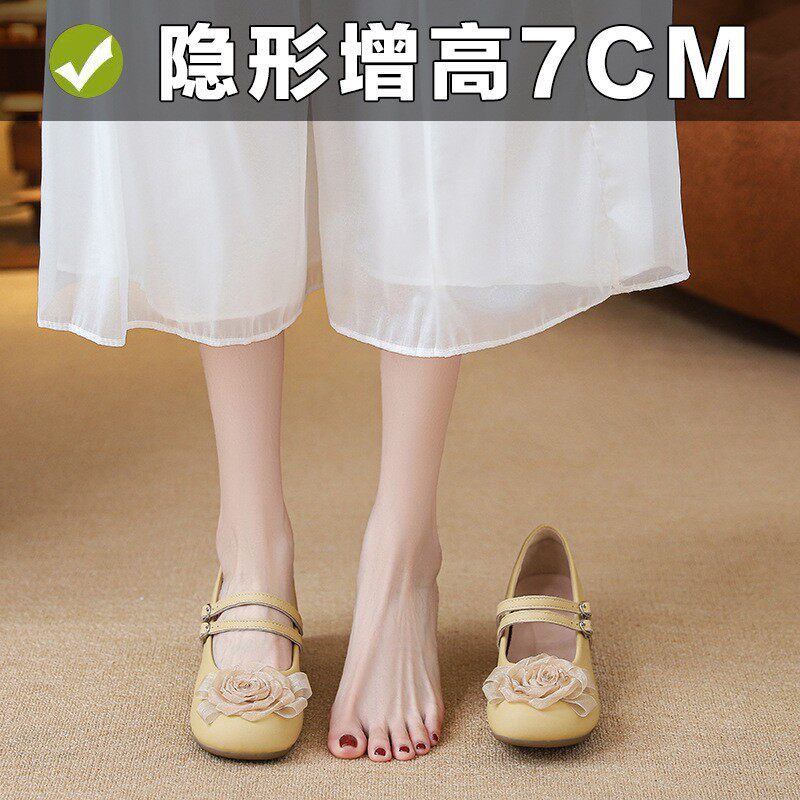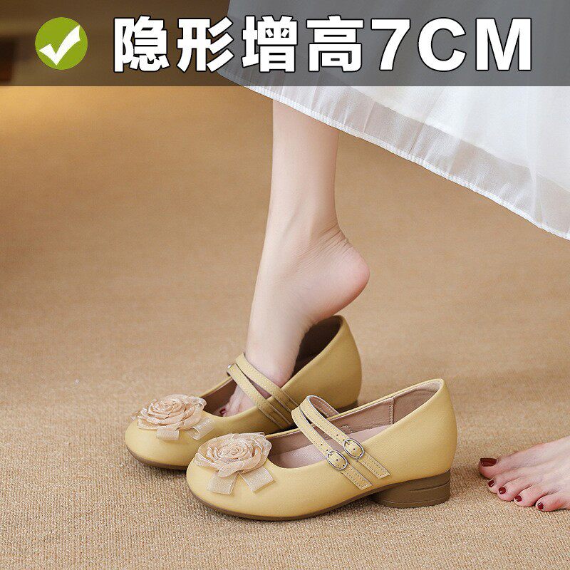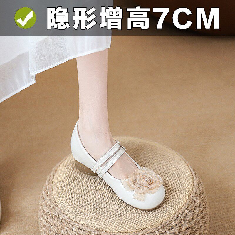 2026新款法式超软粗跟玛丽珍小个子内增高真皮一字带浅口单鞋女