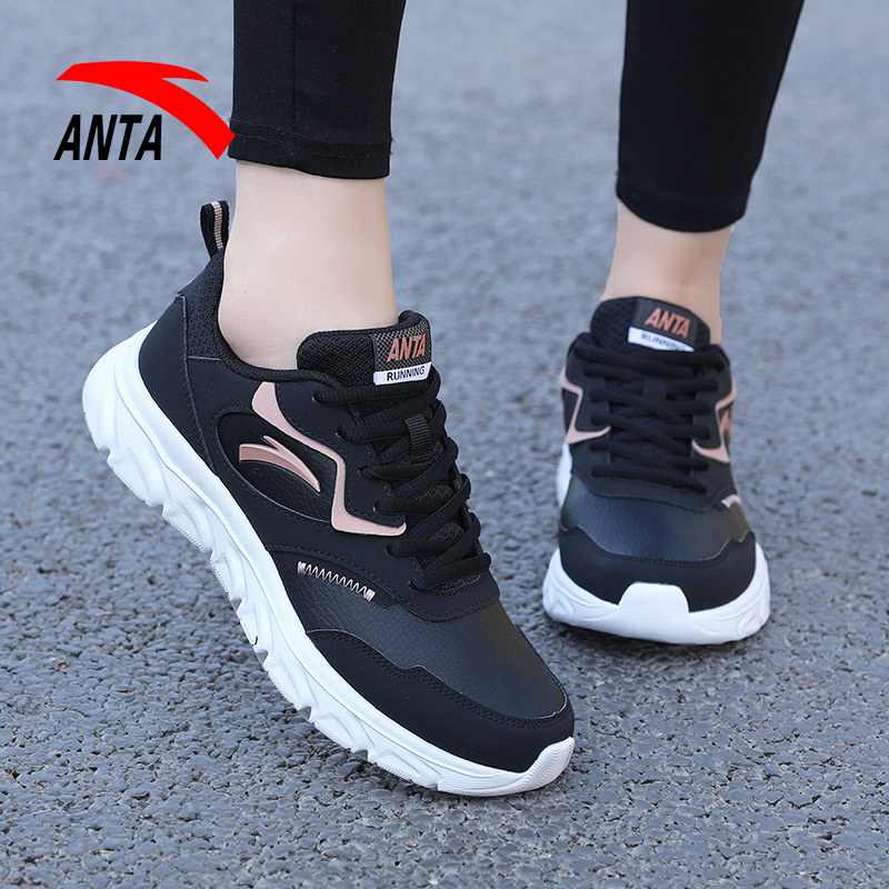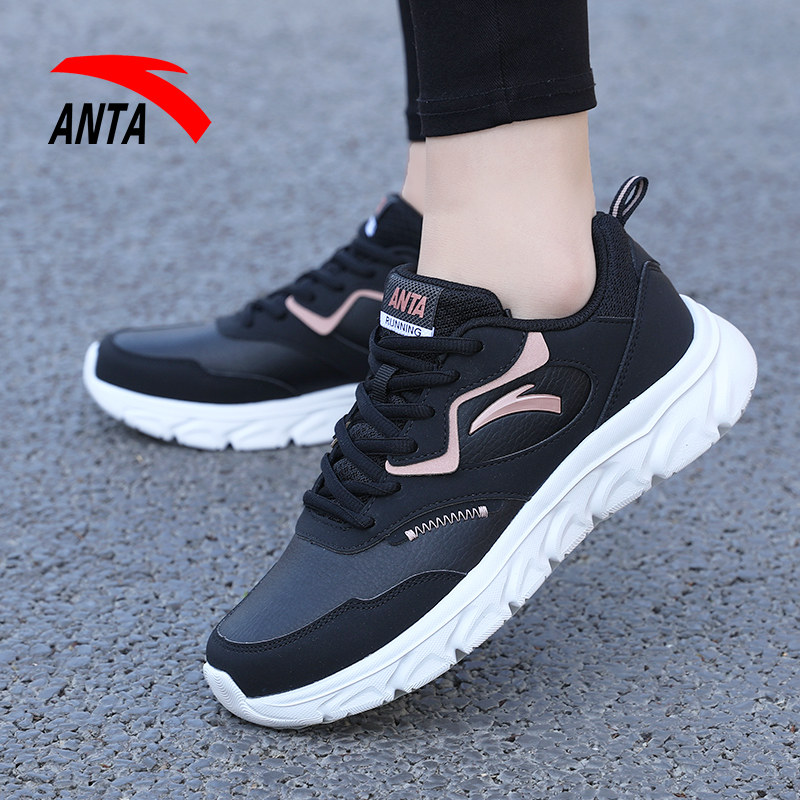 安踏女鞋皮面防水跑步鞋春季新款轻便旅游鞋子官方旗舰女款运动鞋