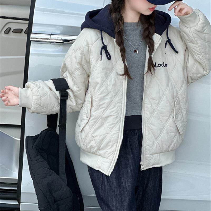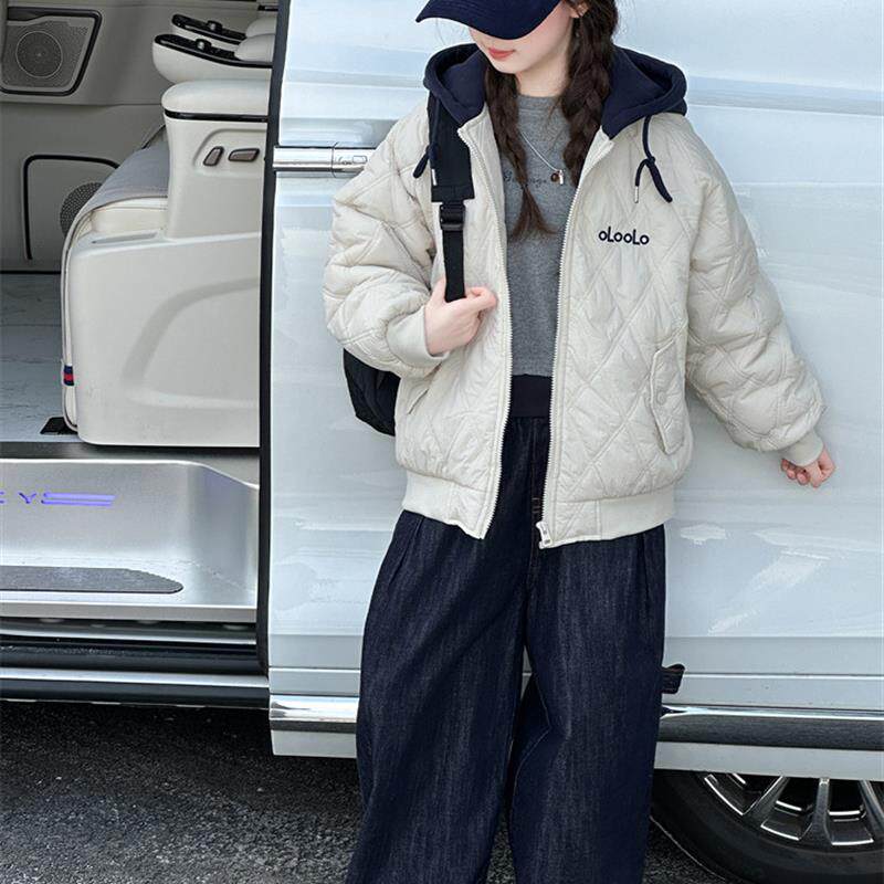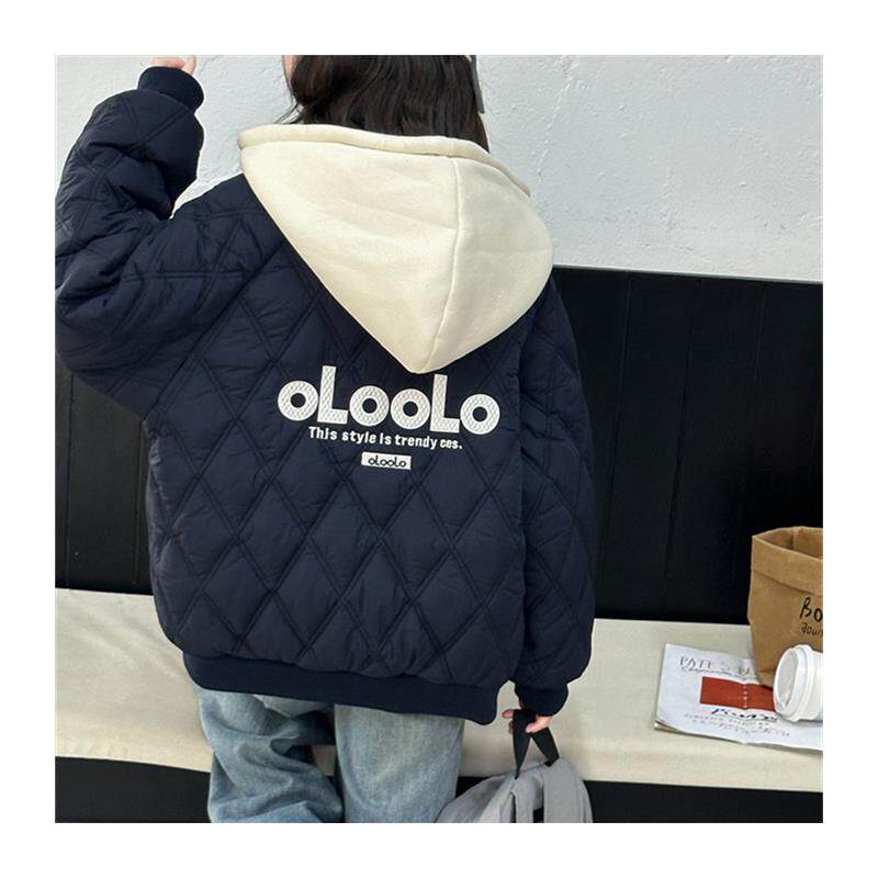 女童连帽夹棉外套2025新款洋气宽松字母中大童二棉加厚冬季棉服潮