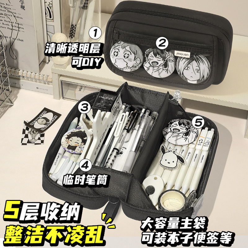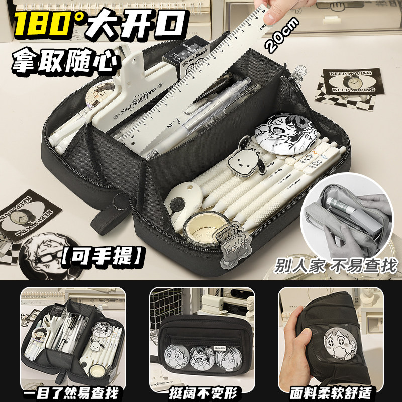 大容量笔袋女孩款2026超火文具盒男孩款初中生铅笔盒女生2024新款痛包男孩子简约高颜值ins风黑色火山高中生