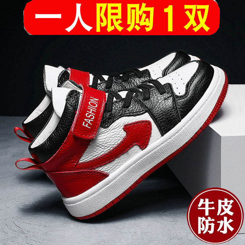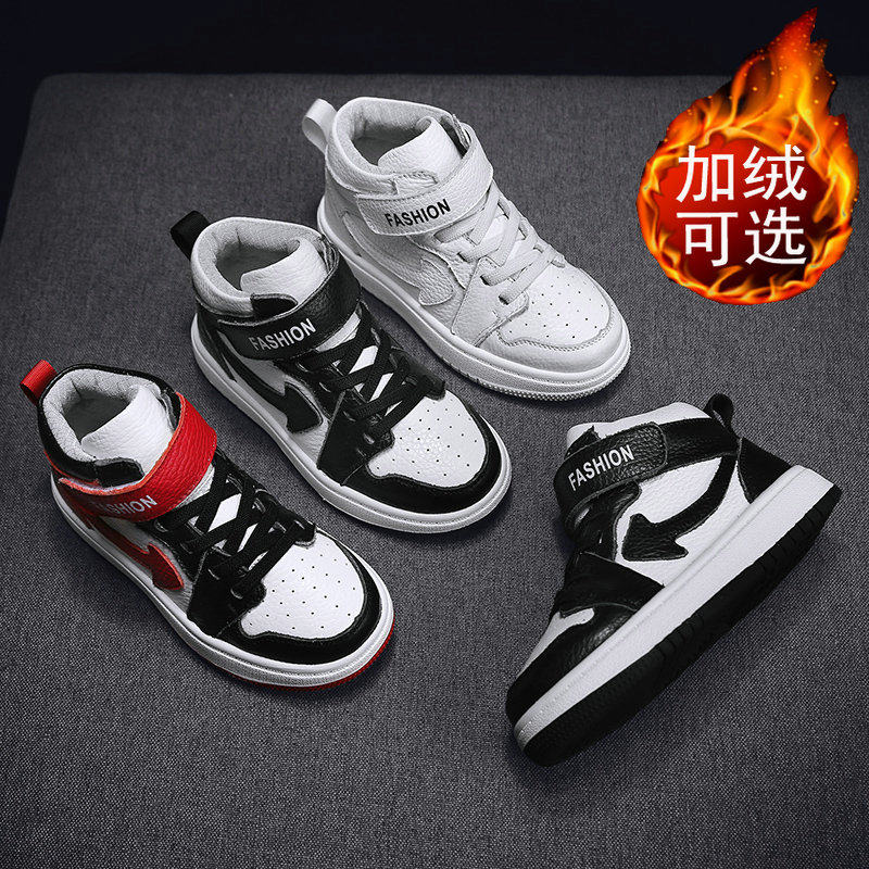 女童鞋子春秋真皮运动棉鞋幼儿园儿童小白鞋头层牛皮女孩高帮板鞋