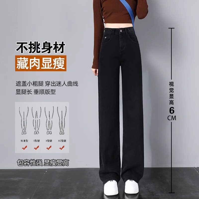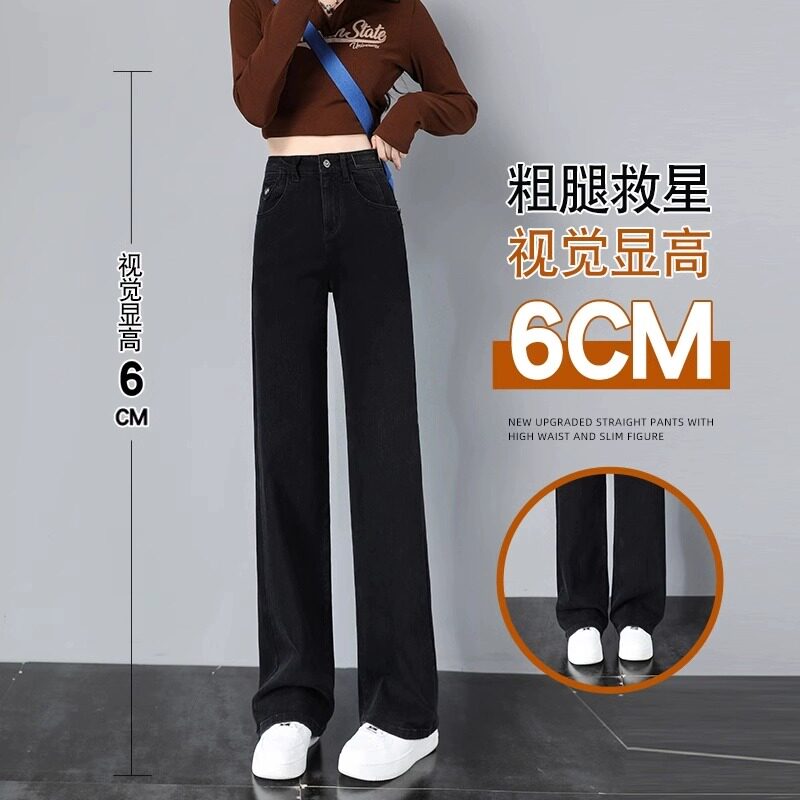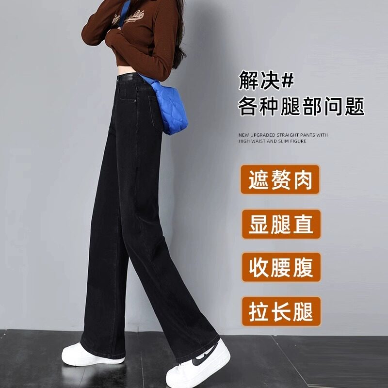 黑色直筒牛仔裤女2026新款春季爆款小个子高腰显瘦裤子窄版阔腿裤