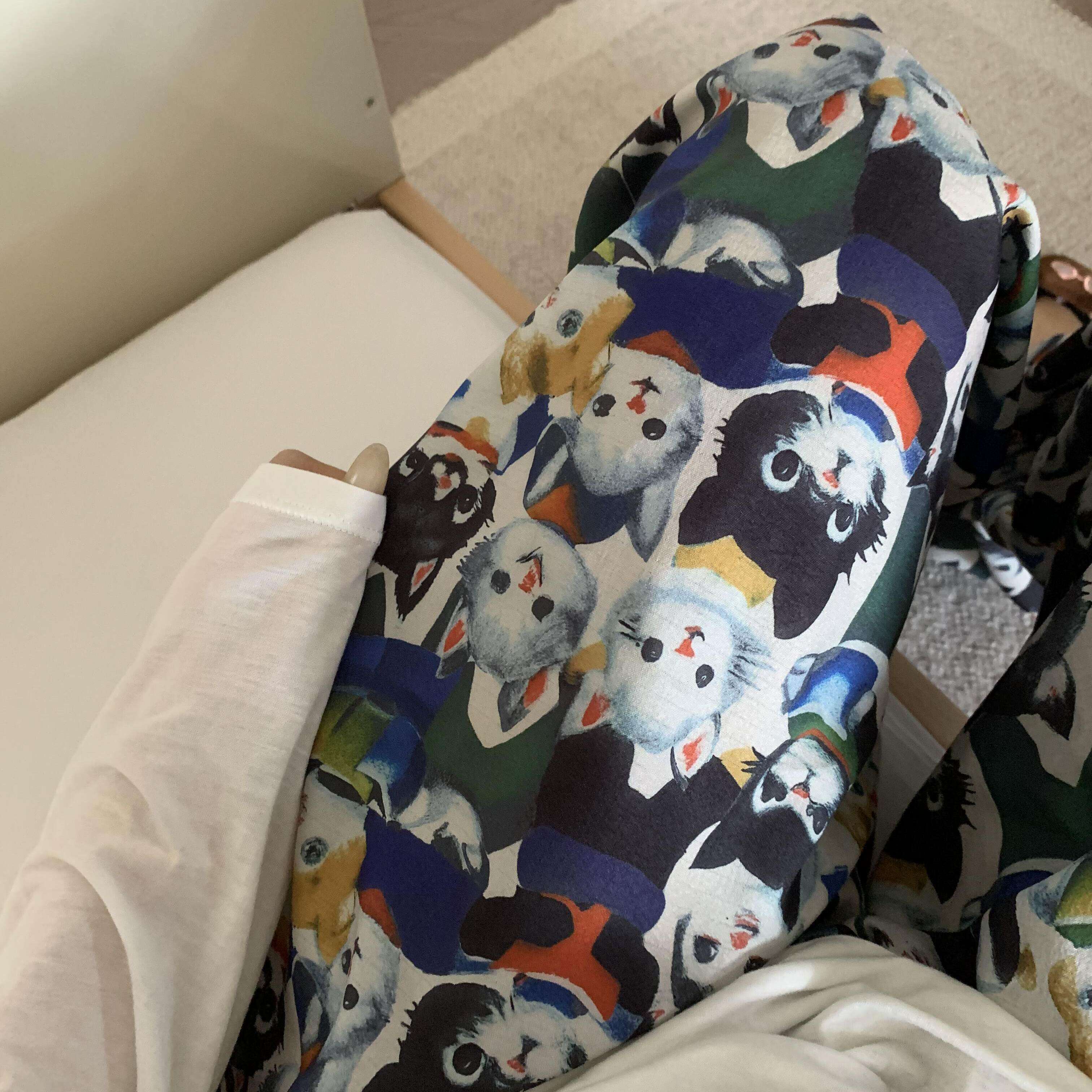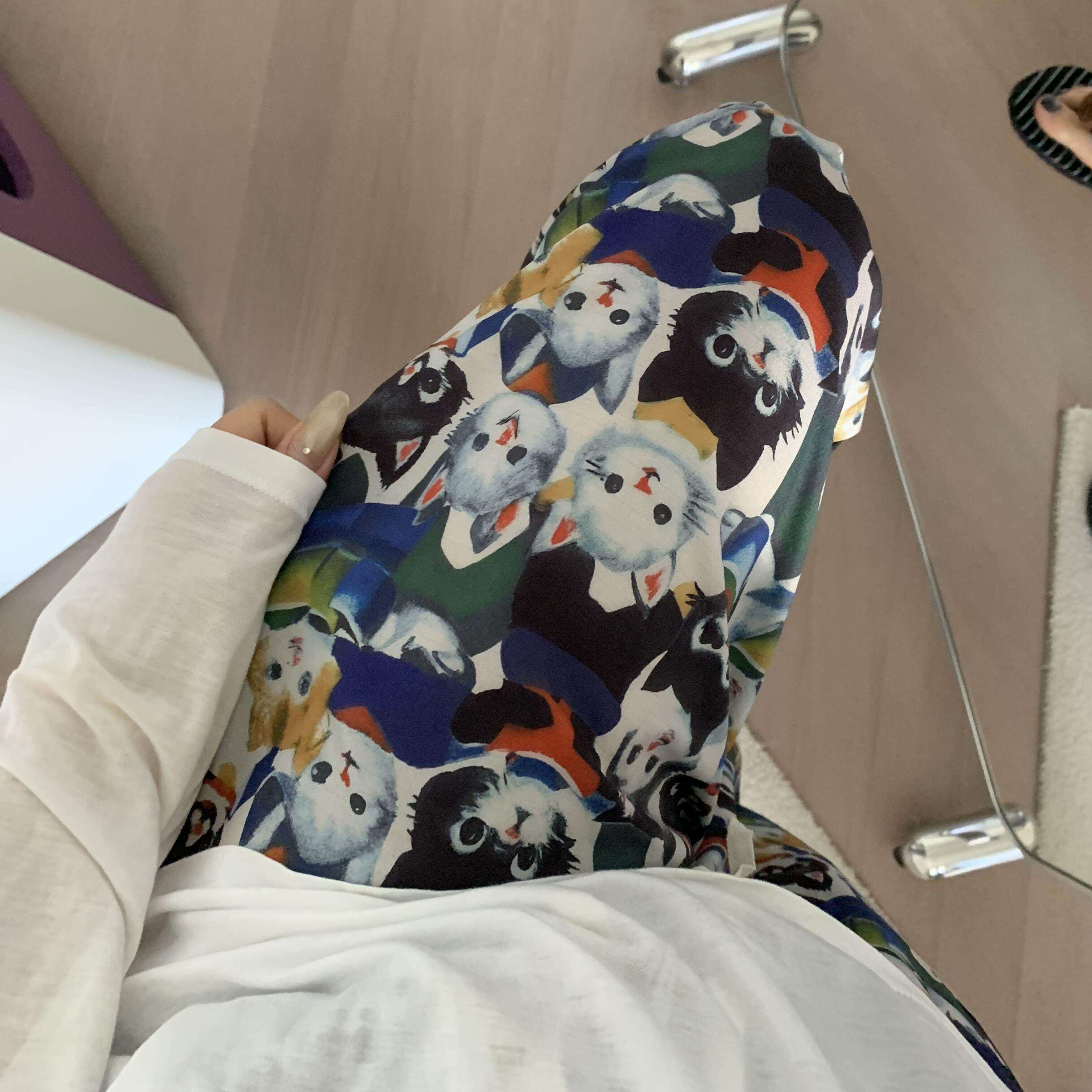 猫咪可爱裤子遛弯裤女款休闲裤宽松慵懒风新款印花直筒裤春夏通勤