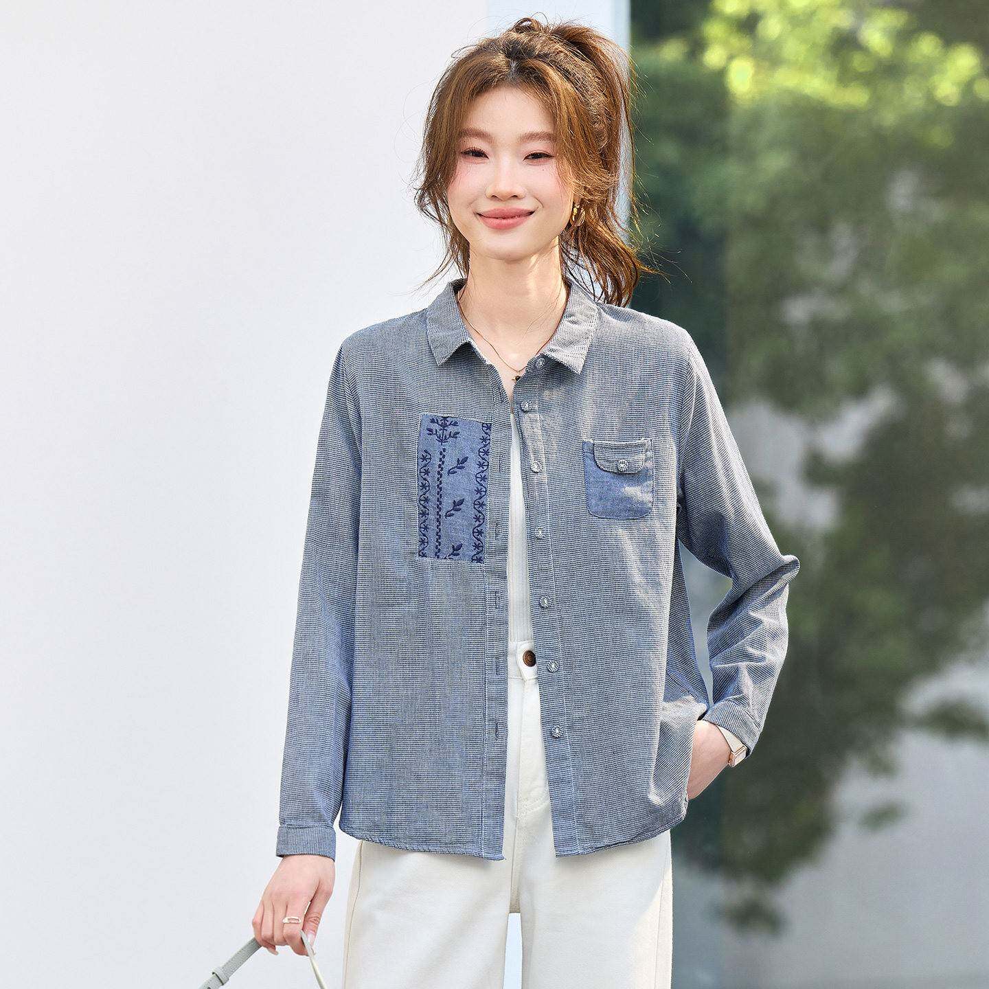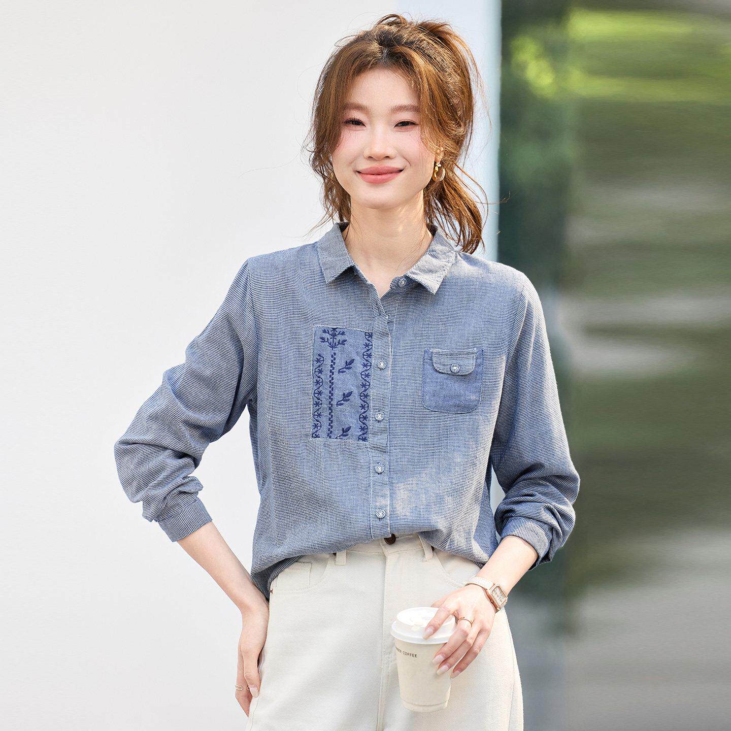 春装衬衫女款2026新款轻奢高级感纯棉上衣洋气减龄百搭长袖衬衣