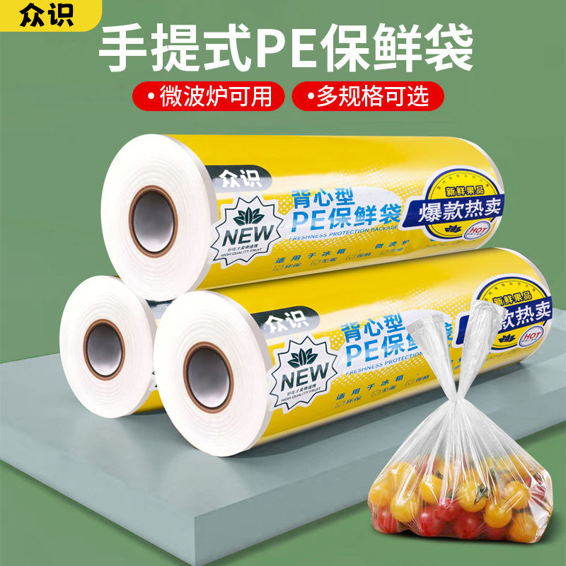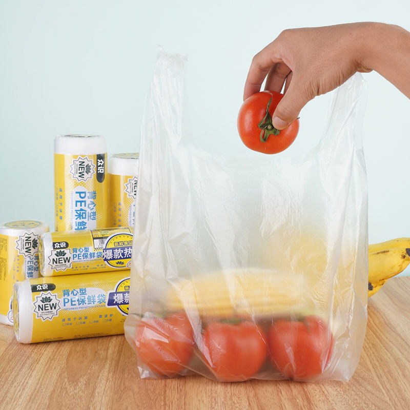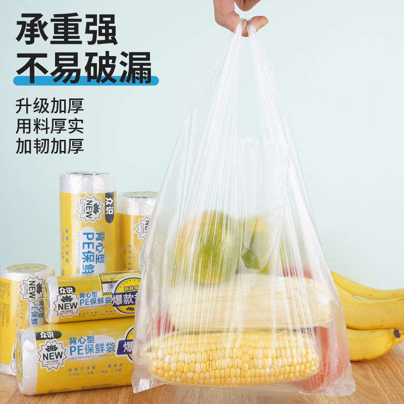 食品级保鲜袋背心式家用手提加厚大中小号食品袋塑料连卷包装袋