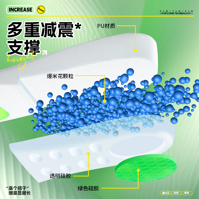 GEL气垫内增高鞋垫男款运动减震隐形久站不累脚女士新款增高垫4cm