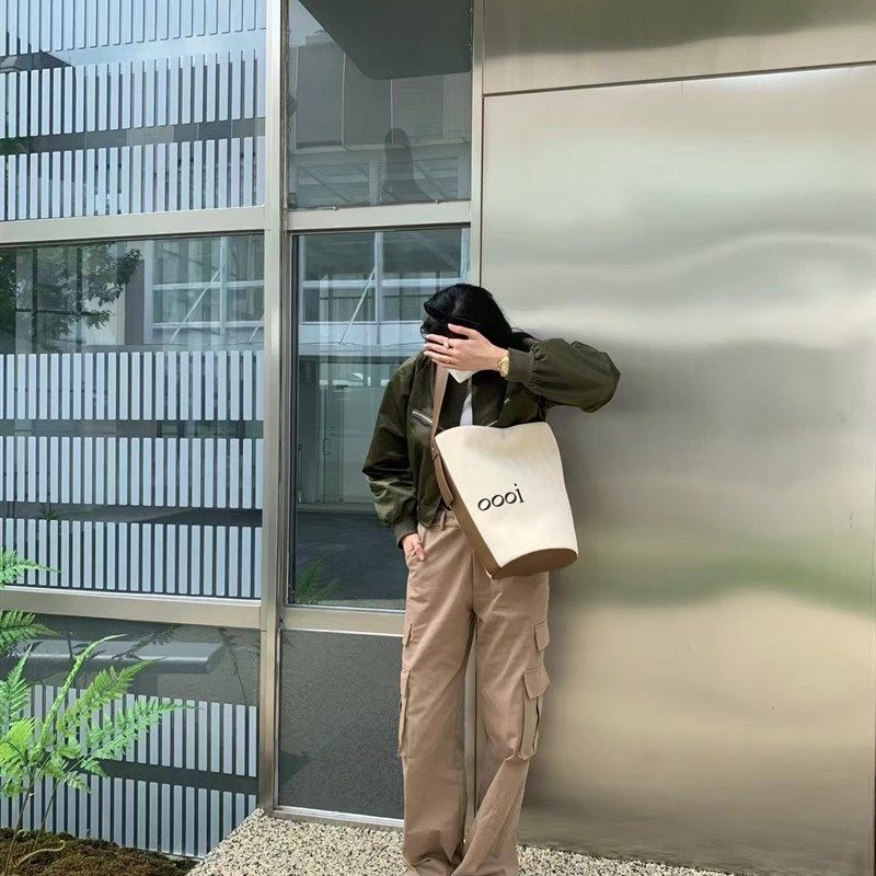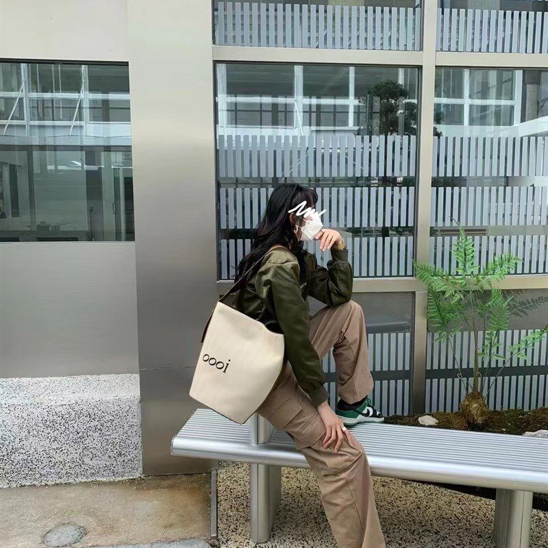小众包包2024早秋新款高级感宽肩带帆布水桶包女大容量通勤单肩包