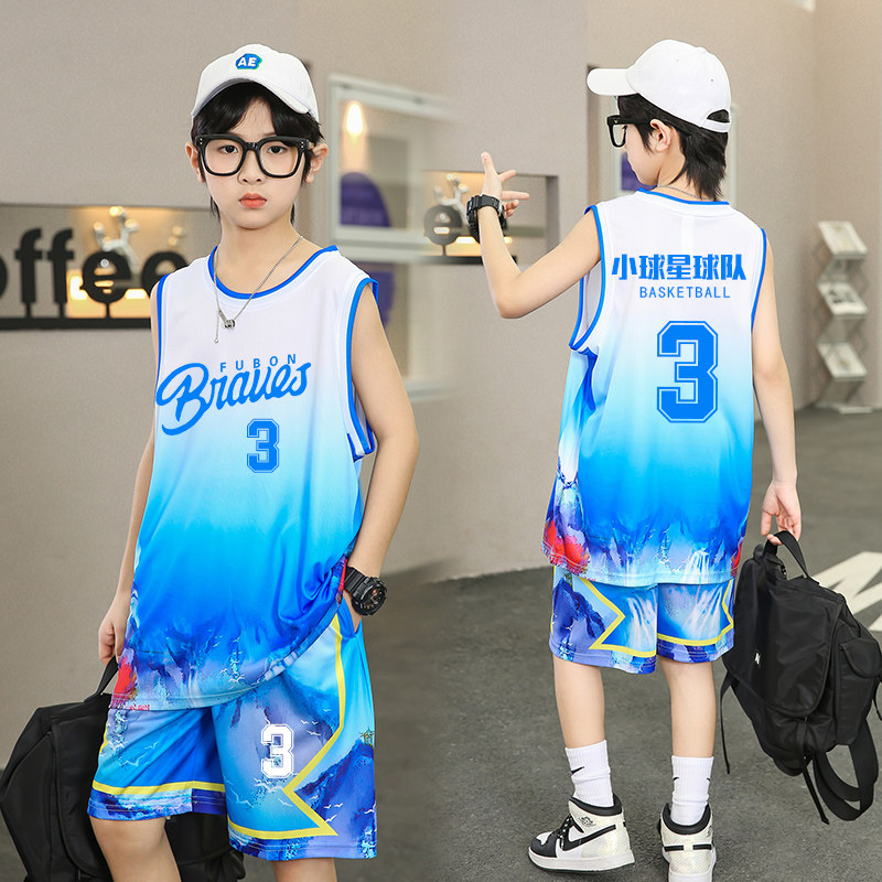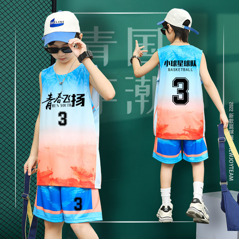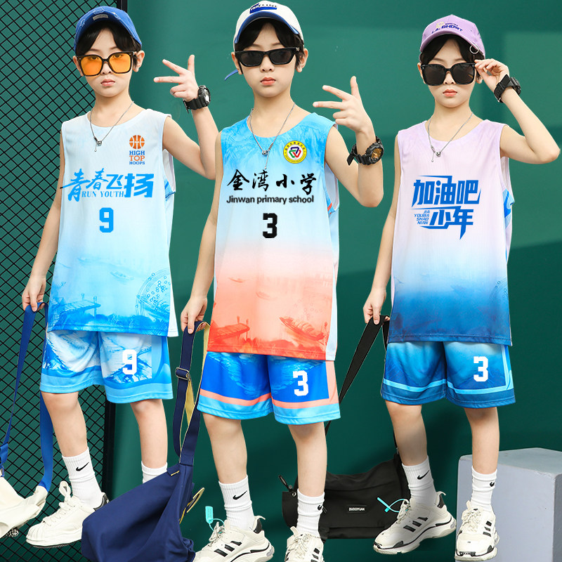 儿童篮球服套装男童2023新款训练服小学生比赛球衣定制夏背心队服