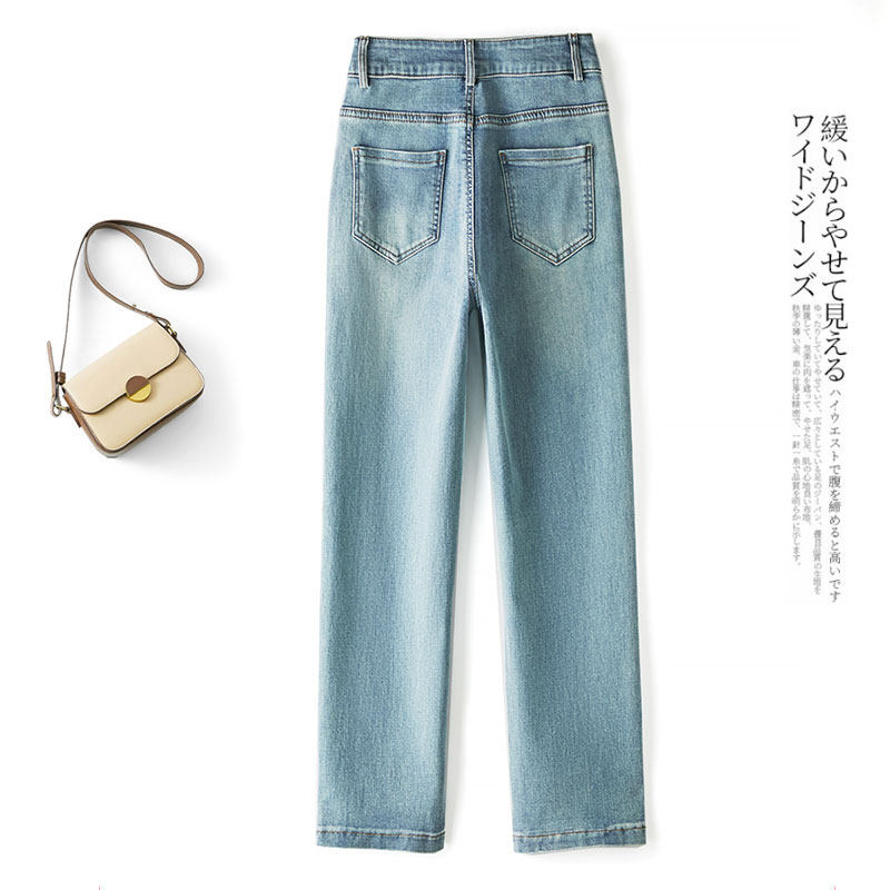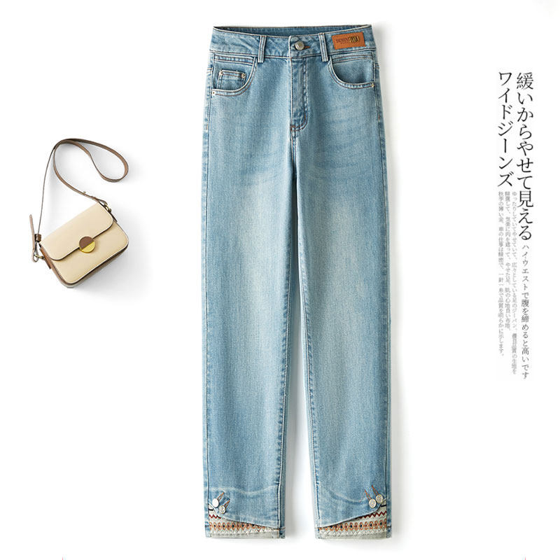 窄版直筒牛仔裤女新款2026春夏季国风高腰显瘦拼接法棍九分烟管裤