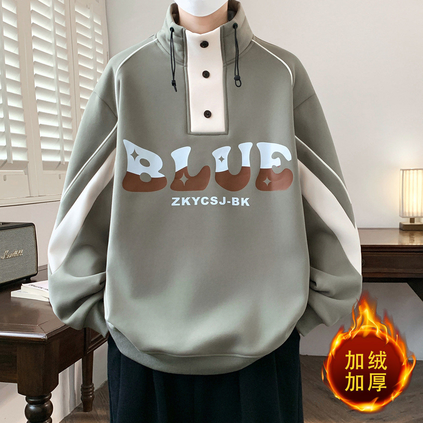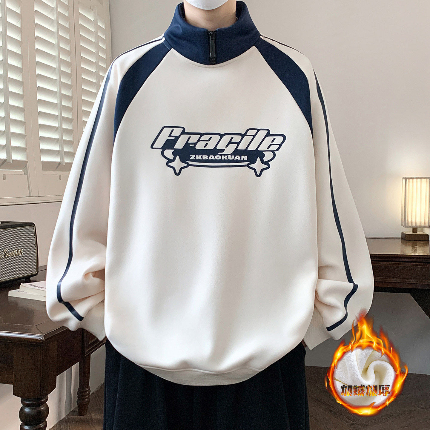 进口款卫衣男孩初中高中学生加绒加厚青少年大童装半高领打底衫