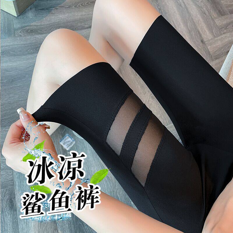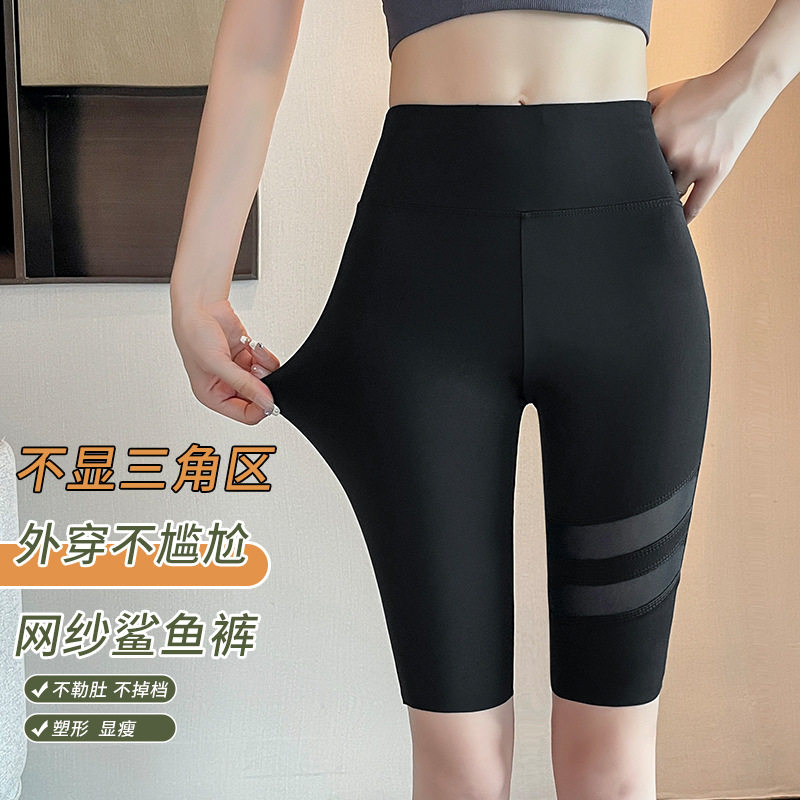 网纱冰丝鲨鱼裤夏季女外穿五分薄款骑行裤高腰收腹提臀瑜伽芭比裤