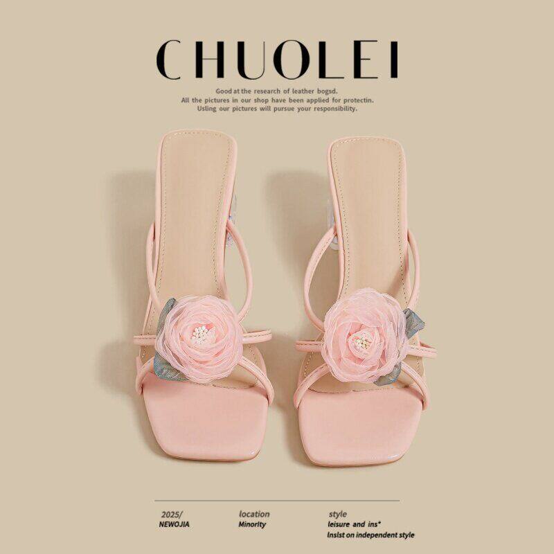 法式外穿凉拖女2026夏季新款百搭水晶粗高跟不累脚绝美配裙子拖鞋