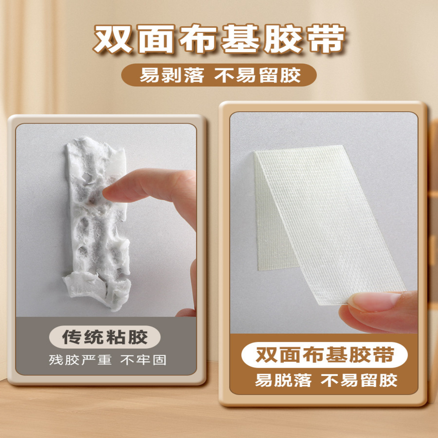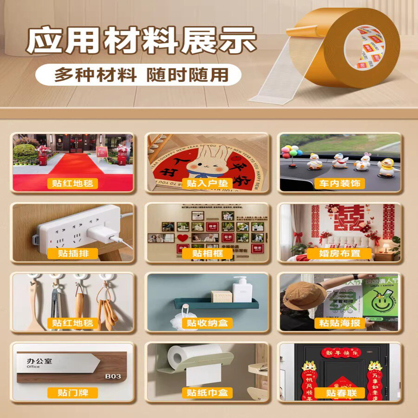 得力网格双面胶不留痕高粘度布基胶带强力无痕高粘度车用沙发坐垫婚庆地毯贴墙防水透明耐高温春联对联专用胶
