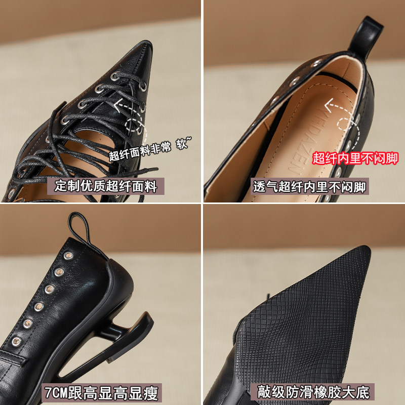 小众复古尖头系带悬浮跟单鞋女2026春季新款棕色浅口不累脚高跟鞋