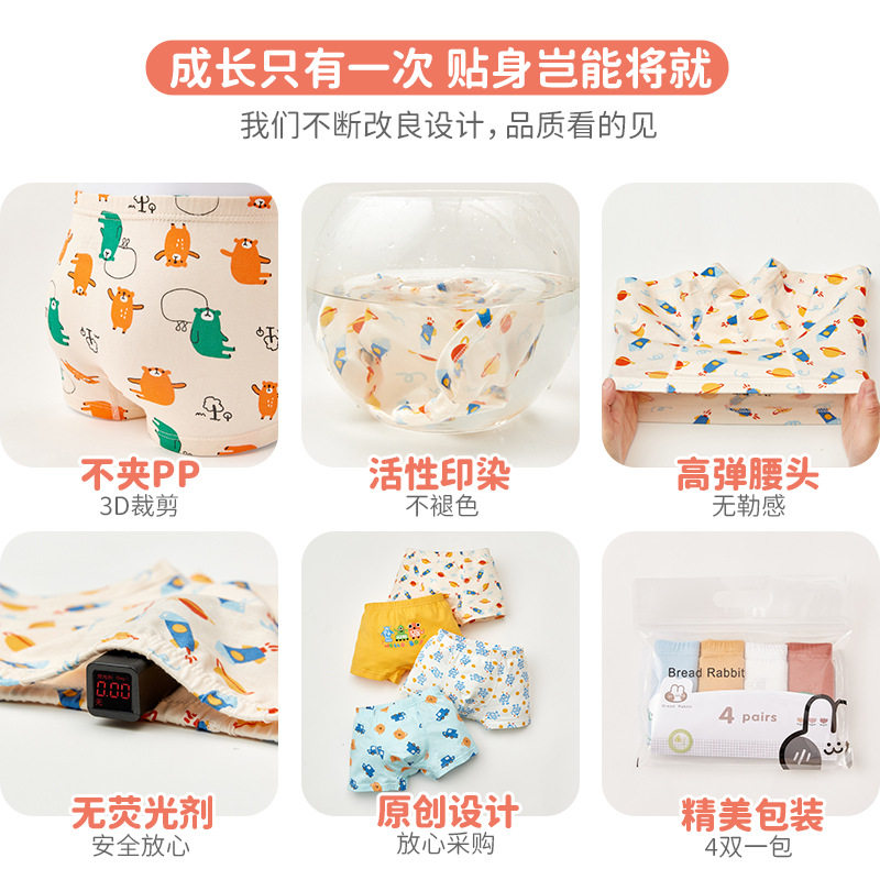品牌A类儿童平角内裤不夹屁屁无痕男童可爱纯棉四角三角短裤4条