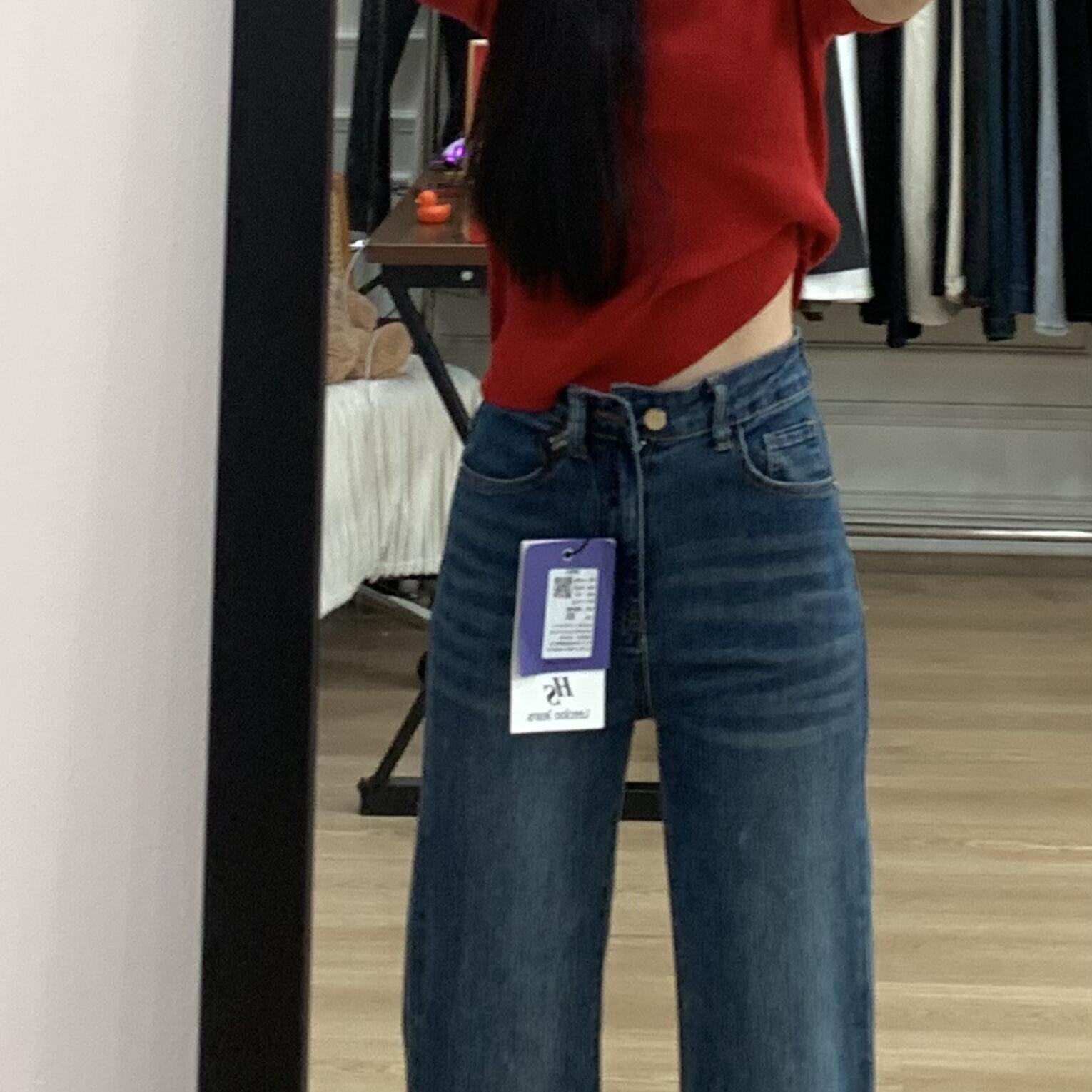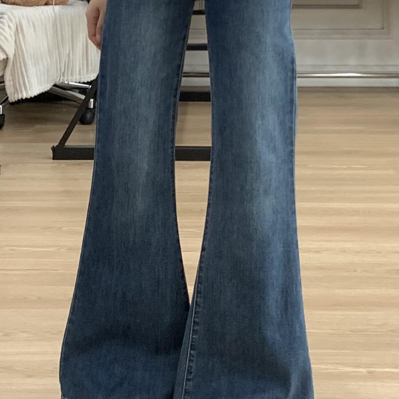 深蓝色不贴腿微喇牛仔裤女2026夏季新款高腰修身喇叭马蹄拖地裤子