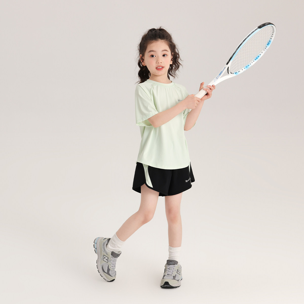 布丁哈鲁童装夏装女童2026夏季新款儿童休闲运动速干短袖短裤套装