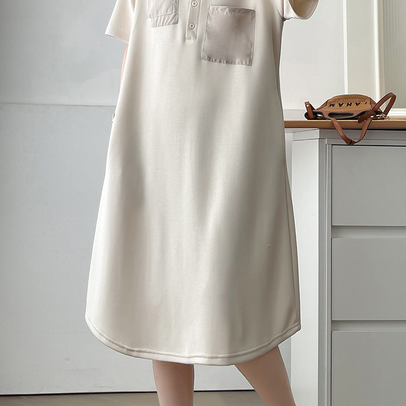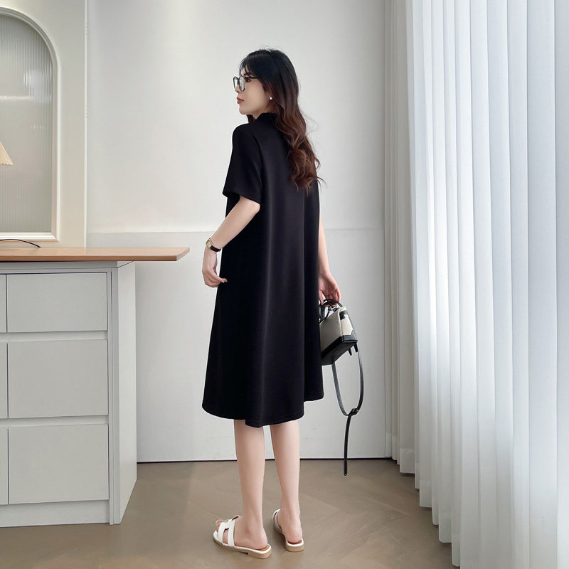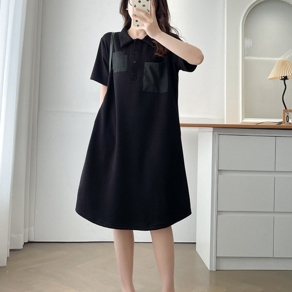 连衣裙女大码胖mm梨型身材2025夏新款200斤时尚贴袋宽松短袖裙子