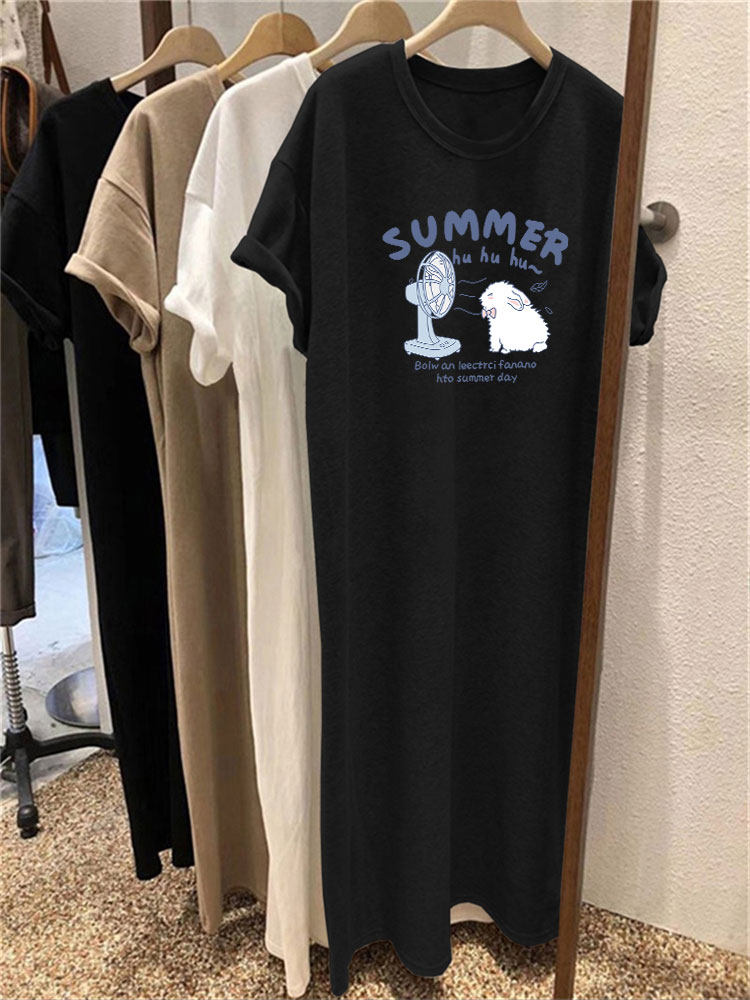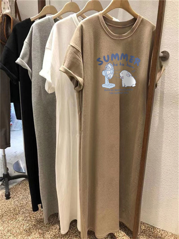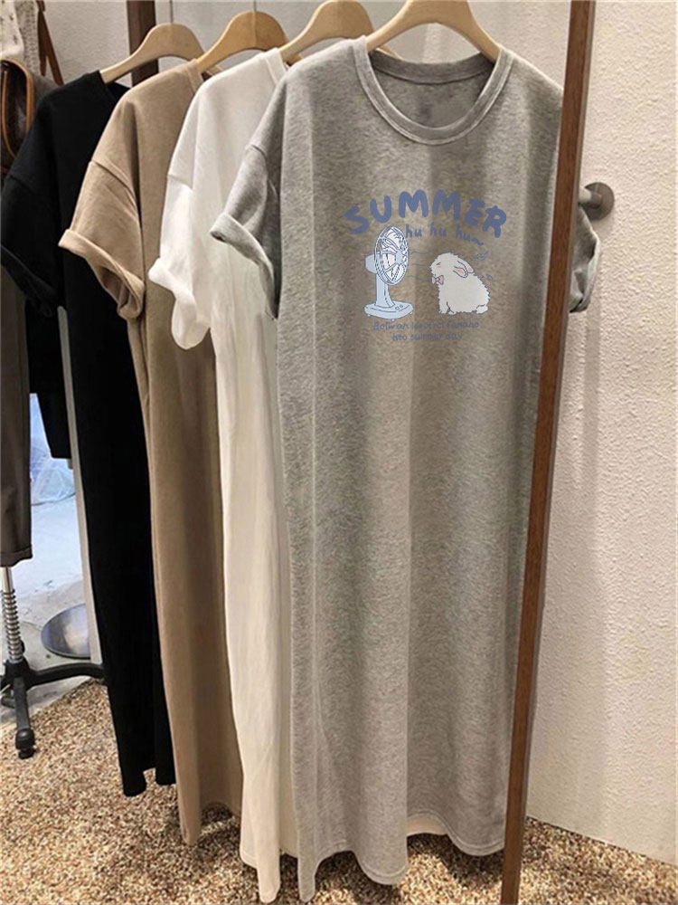 白色重磅短袖t恤裙女夏季宽松大码休闲百搭上衣中长款过膝连衣裙