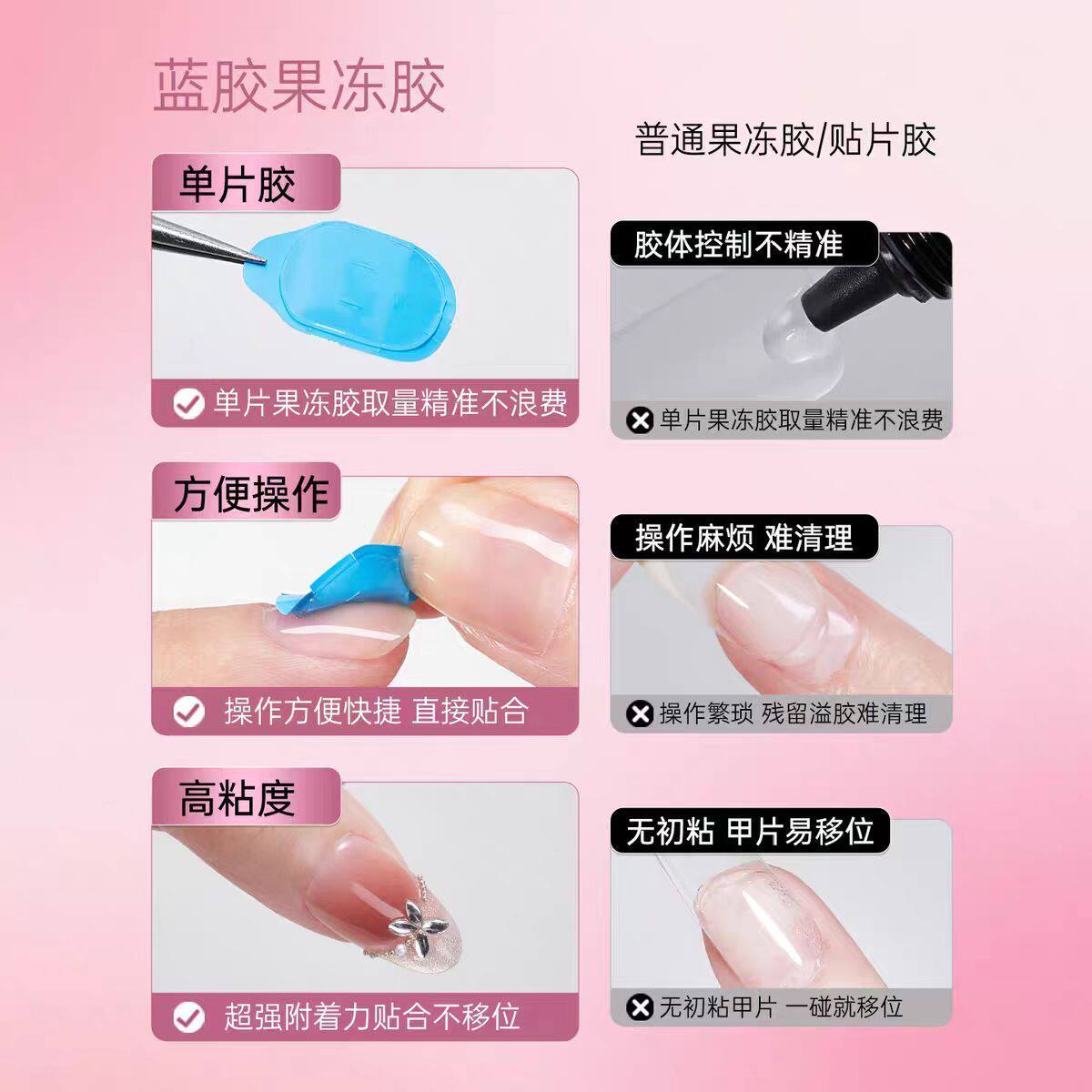升级版蓝胶巨粘果冻胶穿戴甲专用美甲贴指甲片固态超粘强力果冻胶