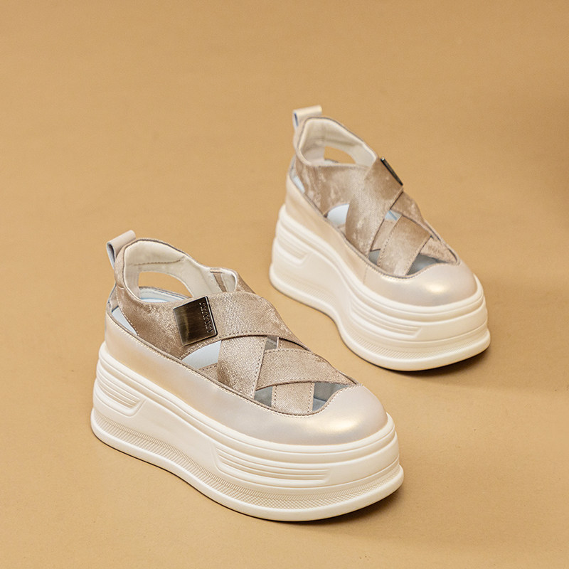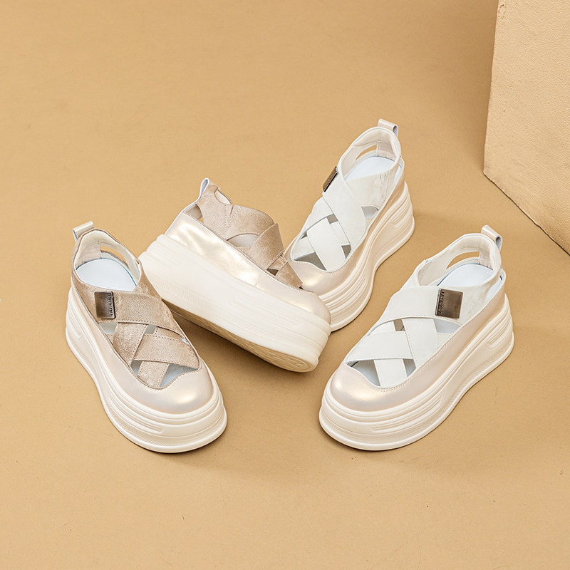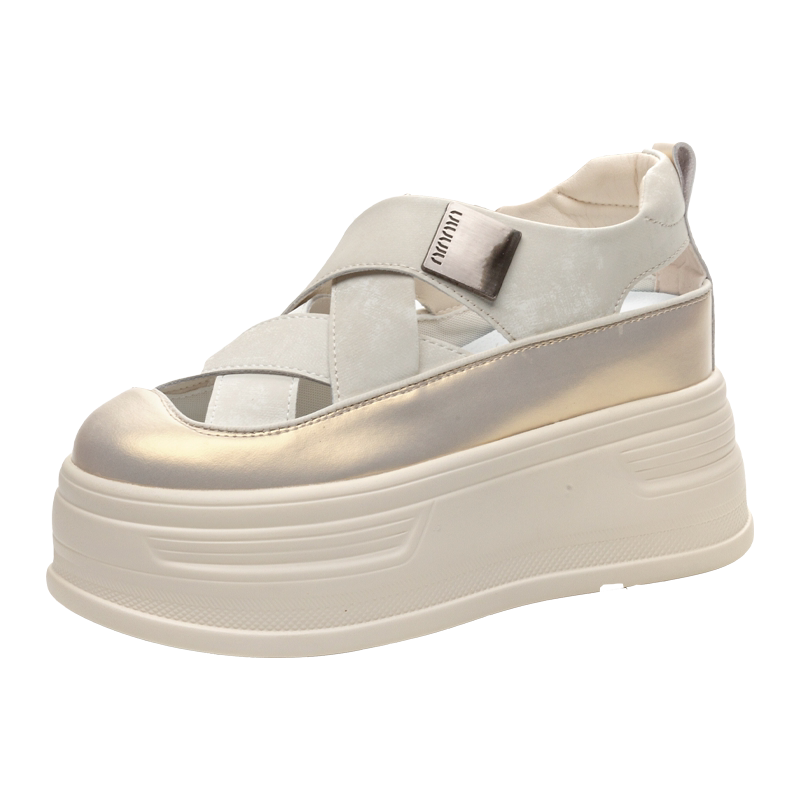 厚底内增高8cm松糕凉鞋女2026新款夏季镂空女鞋银色透气小白鞋