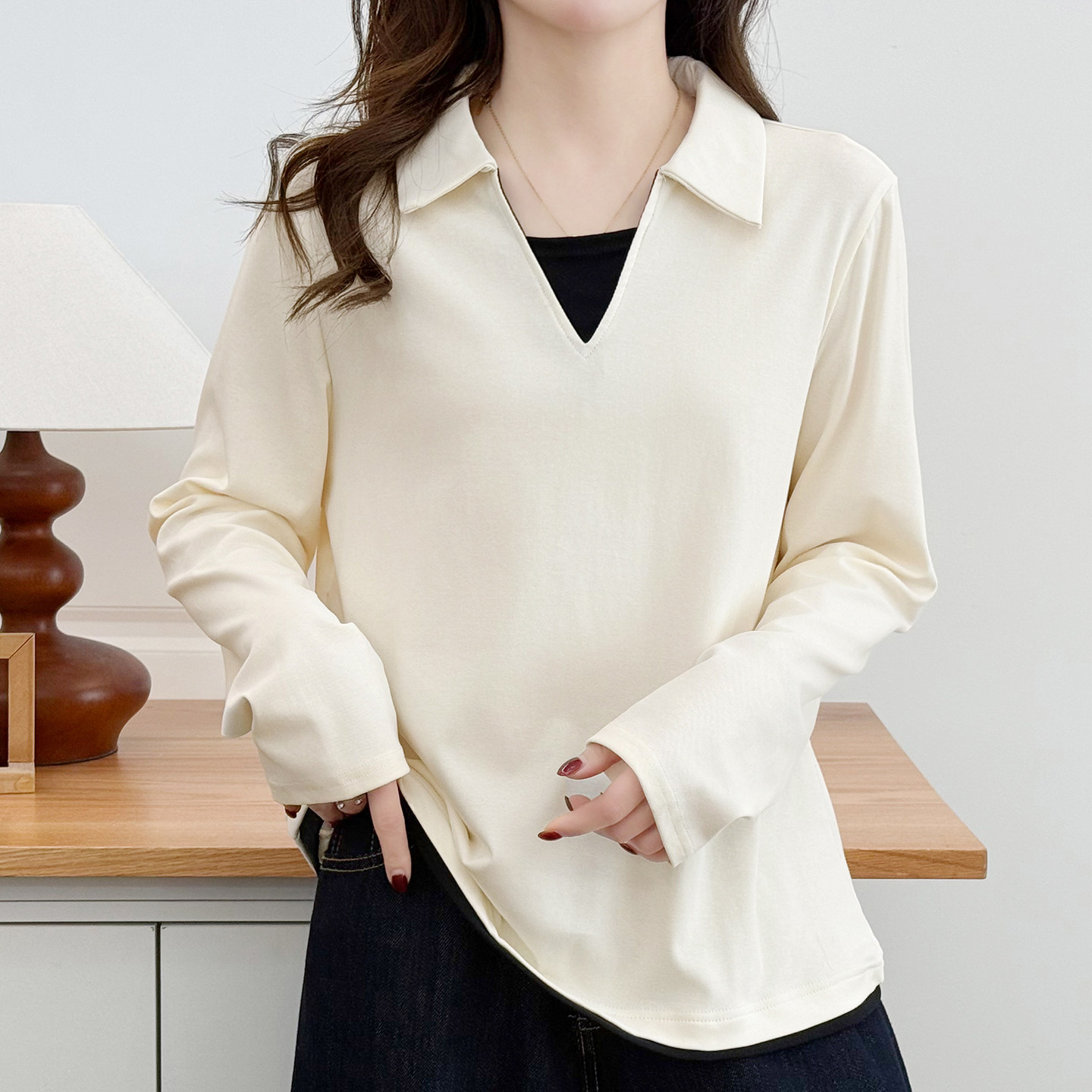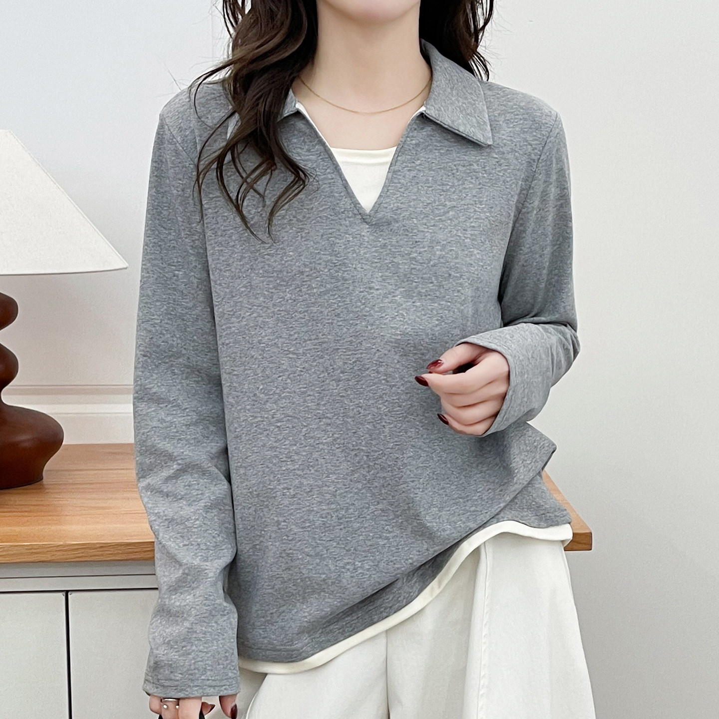 春季大码女装气质百搭假两件卫衣2026新款胖mm宽松显瘦遮肚子上衣