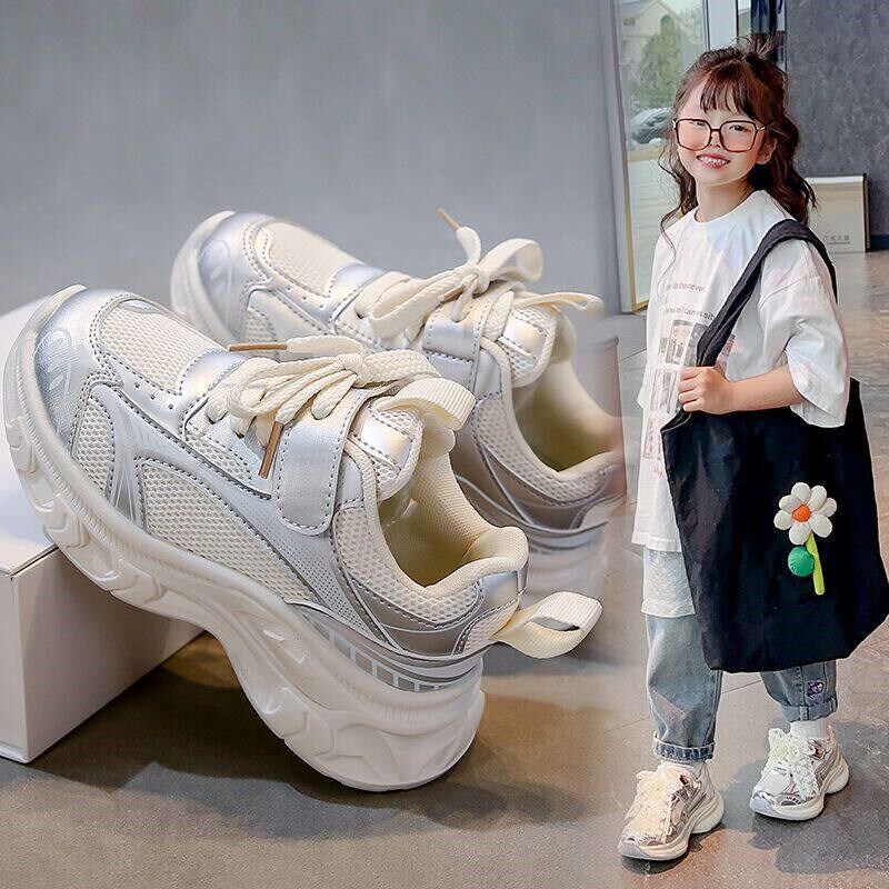 女童老爹鞋春秋新款小白鞋网面透气软底轻便男童跑步鞋儿童运动鞋